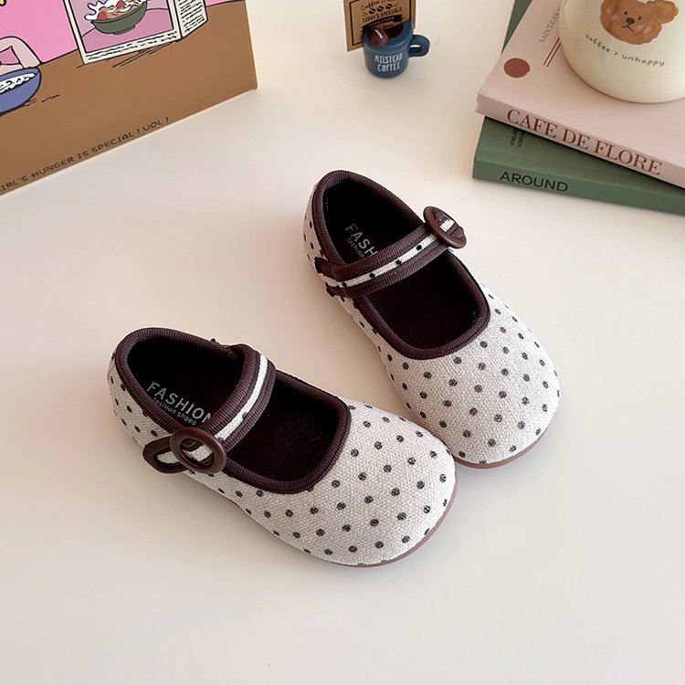 한국 스타일 폴로 도트 벨벳 공주 신발 소녀 2025 봄 새 아기 신발 소프트 단독 어린이 작은 가죽 신발 서양식스토어 가기