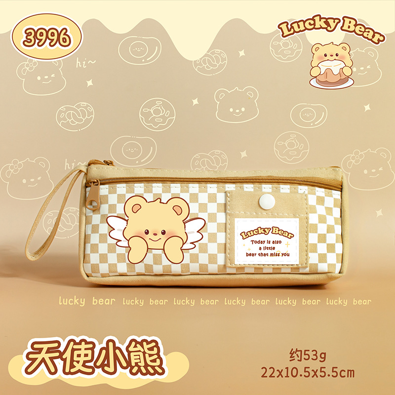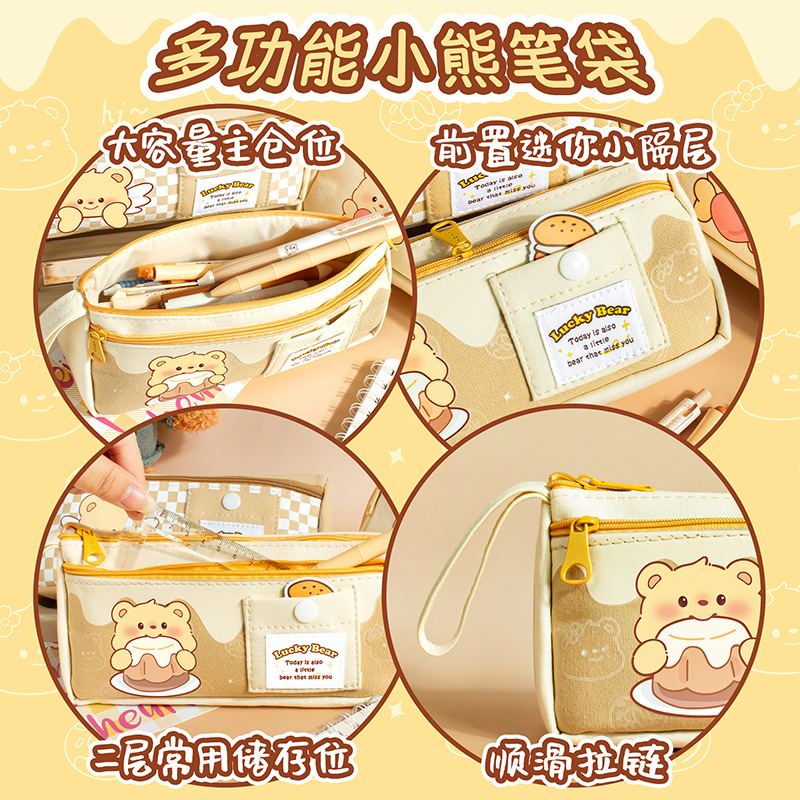 푸딩 베어 대용량 연필 가방 높은 색상 값 더블 레이어 저장 가방 중학생 및 초등학생을위한 동전 지갑 문구 연필 가방스토어 가기