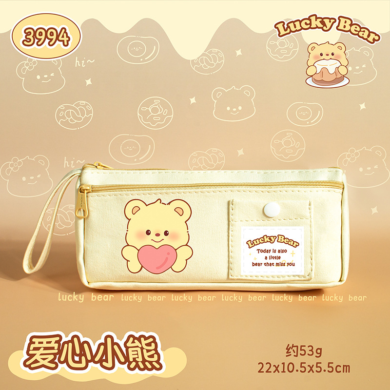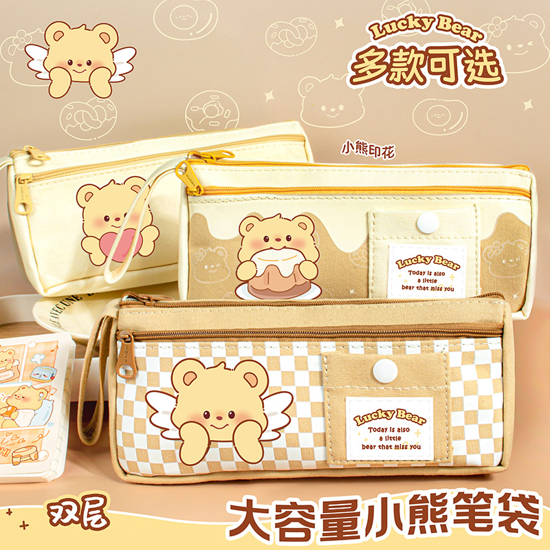 푸딩 베어 대용량 연필 가방 높은 색상 값 더블 레이어 저장 가방 중학생 및 초등학생을위한 동전 지갑 문구 연필 가방
