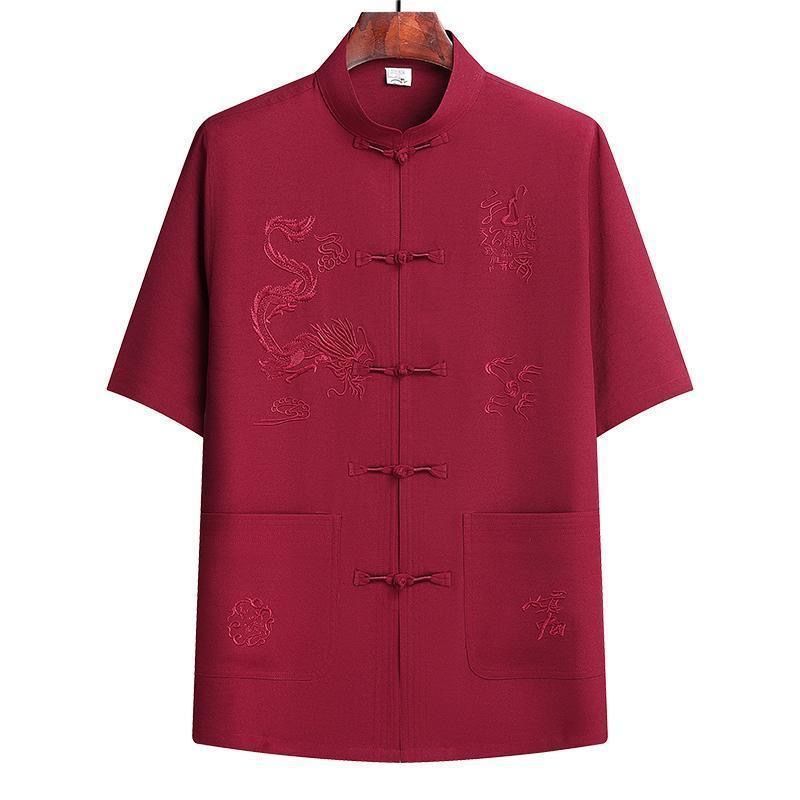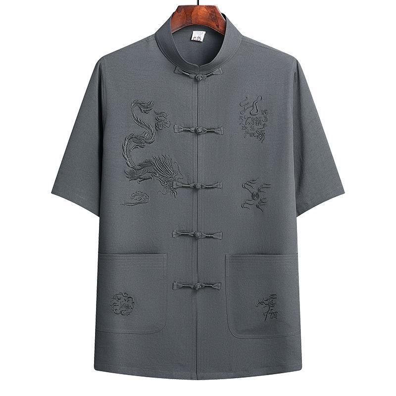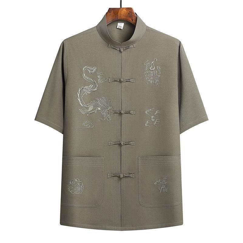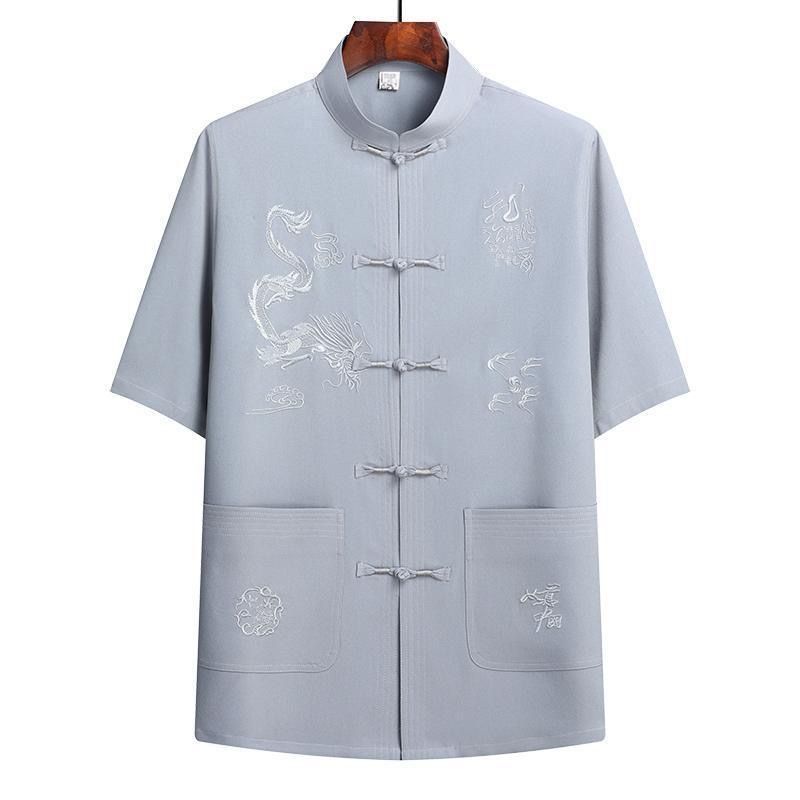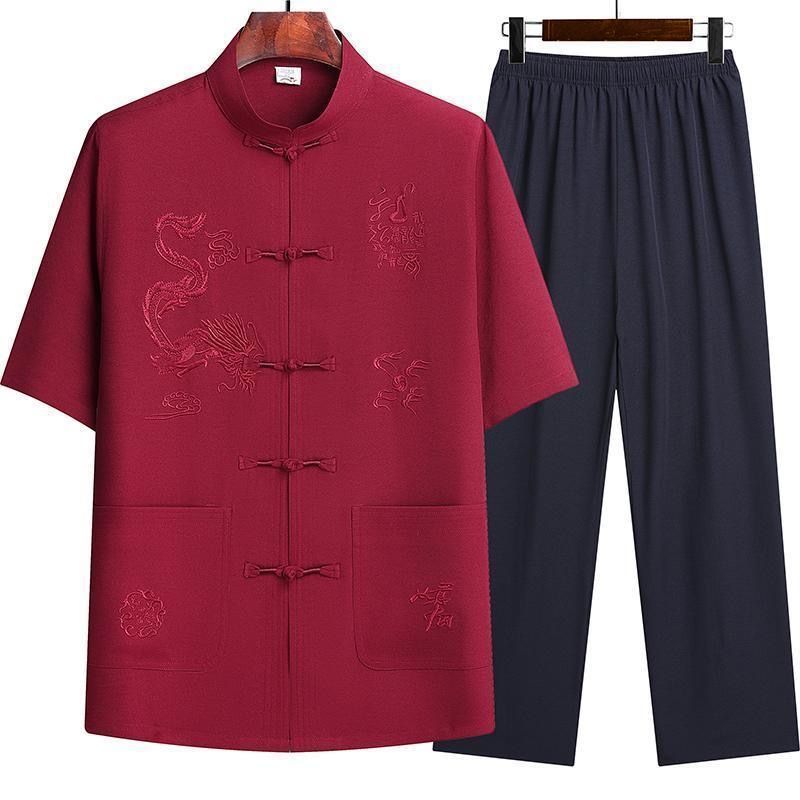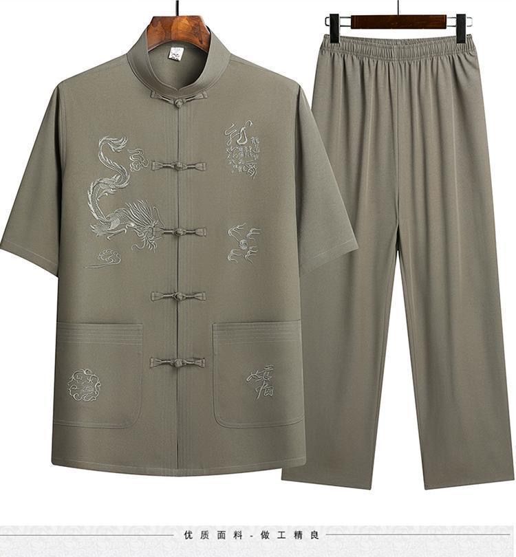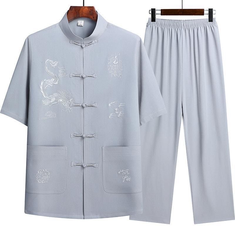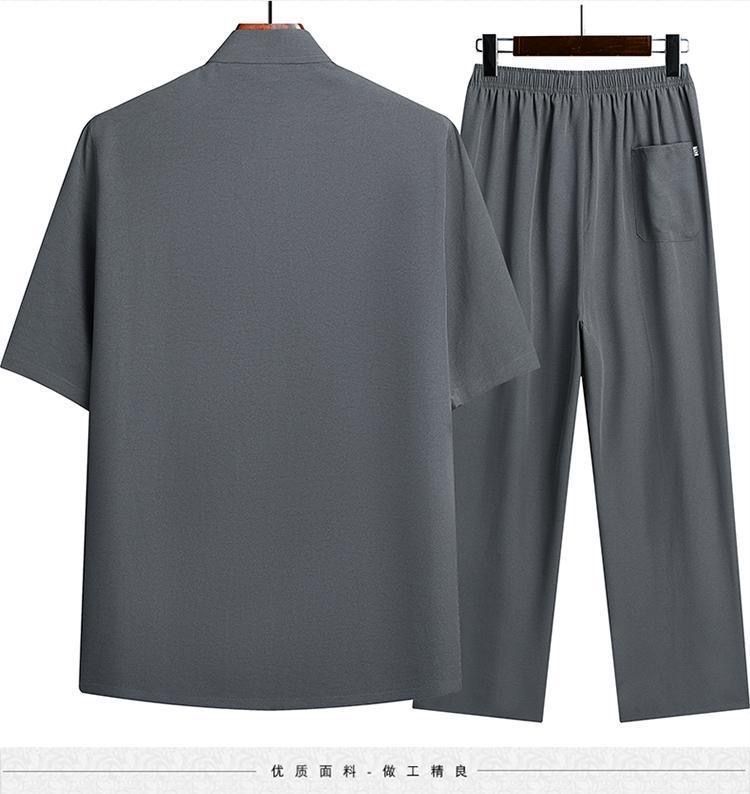 탕 세트 남자 아이스 실크 반팔 세트 아빠 세트 여름 중국 스타일 옷 중년 및 노인 남성 투피스 태극권 세트