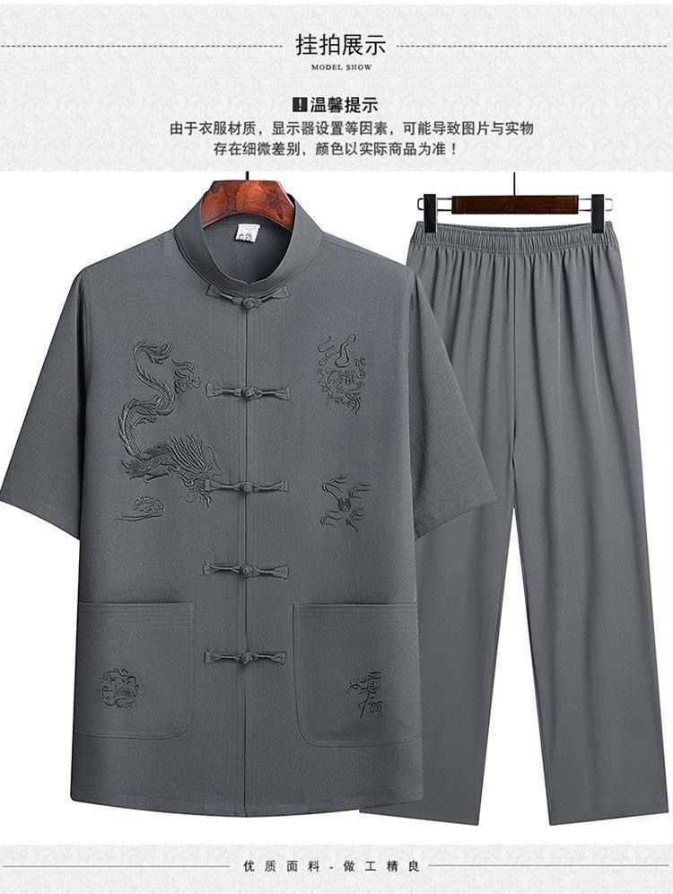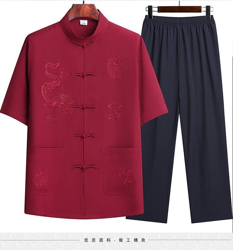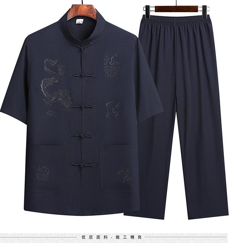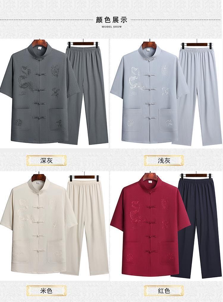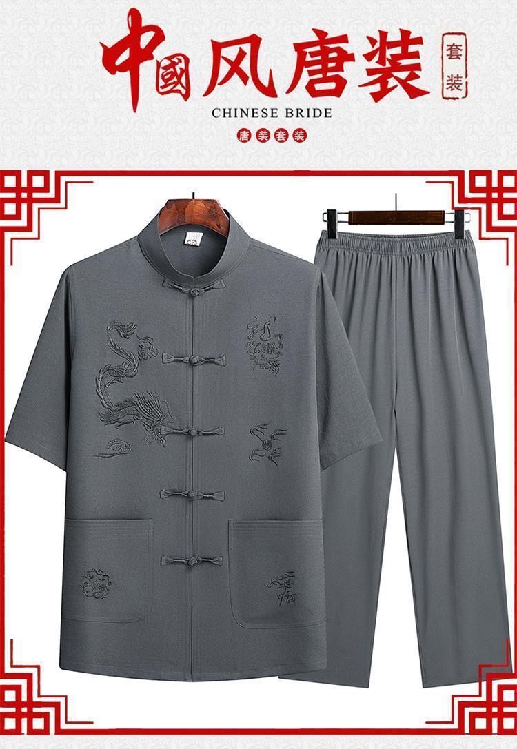 탕 세트 남자 아이스 실크 반팔 세트 아빠 세트 여름 중국 스타일 옷 중년 및 노인 남성 투피스 태극권 세트스토어 가기