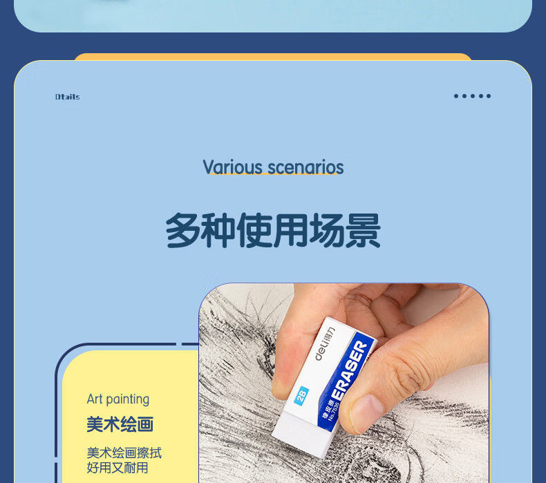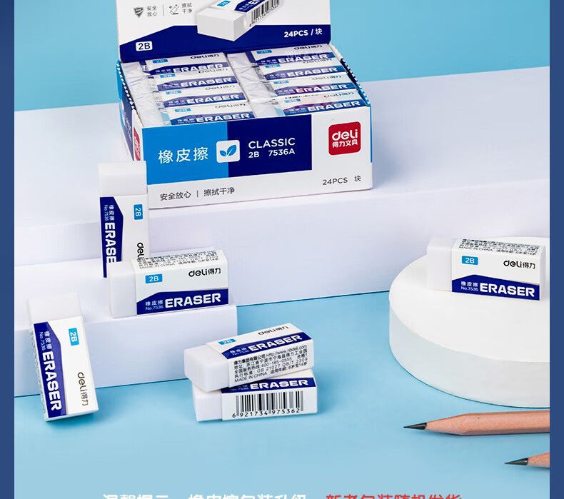 델리 7536A 지우개 직사각형 작은 지우개 학생 시험 그림 지우개 Sassafras 문구 도매 2b 지우개