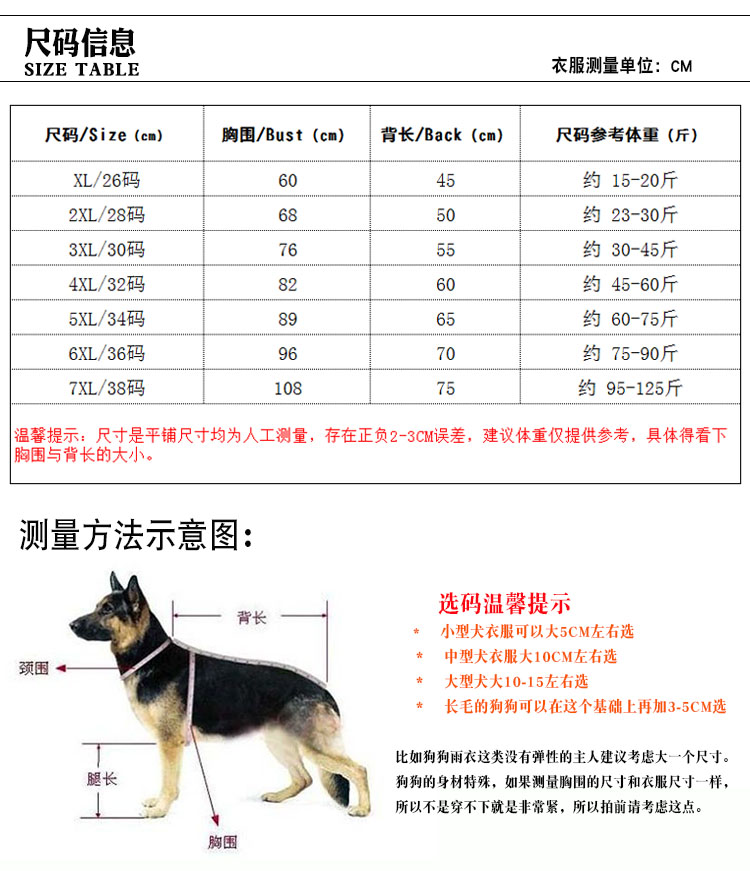 • 체중은 참고용이며 체형에 따라 가슴과 등길이에 따라 다릅니다.