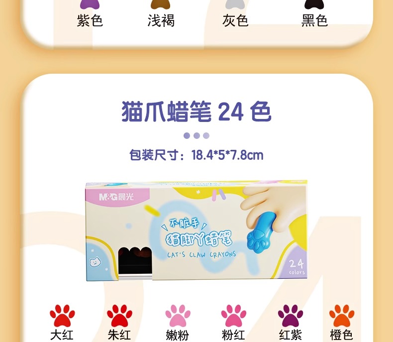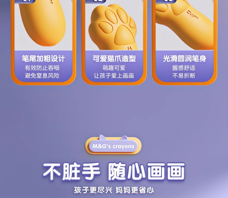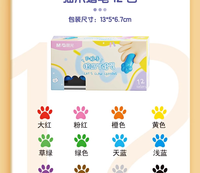 Chenguang 문구류 어린이 고양이 발톱 크레용 안전 드로잉 펜 어린이 유치원을위한 더러운 손을 씻을 수 없음스토어 가기