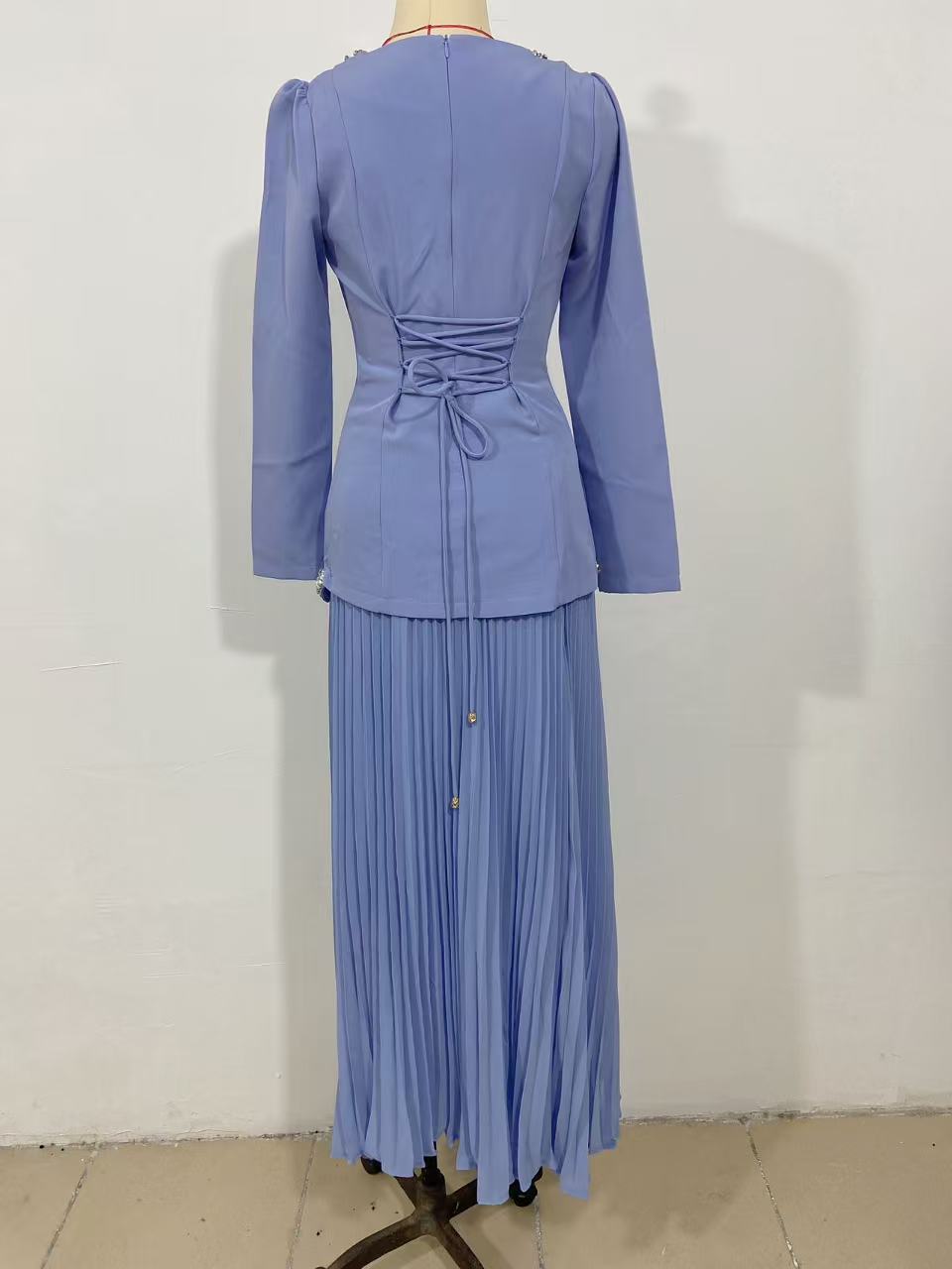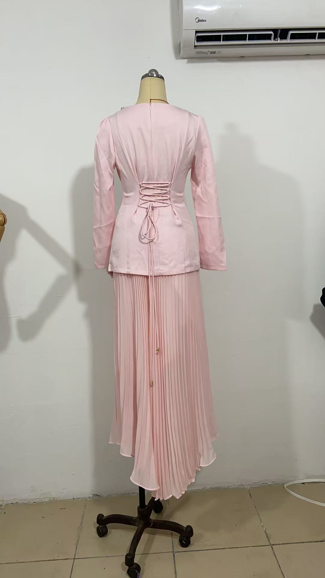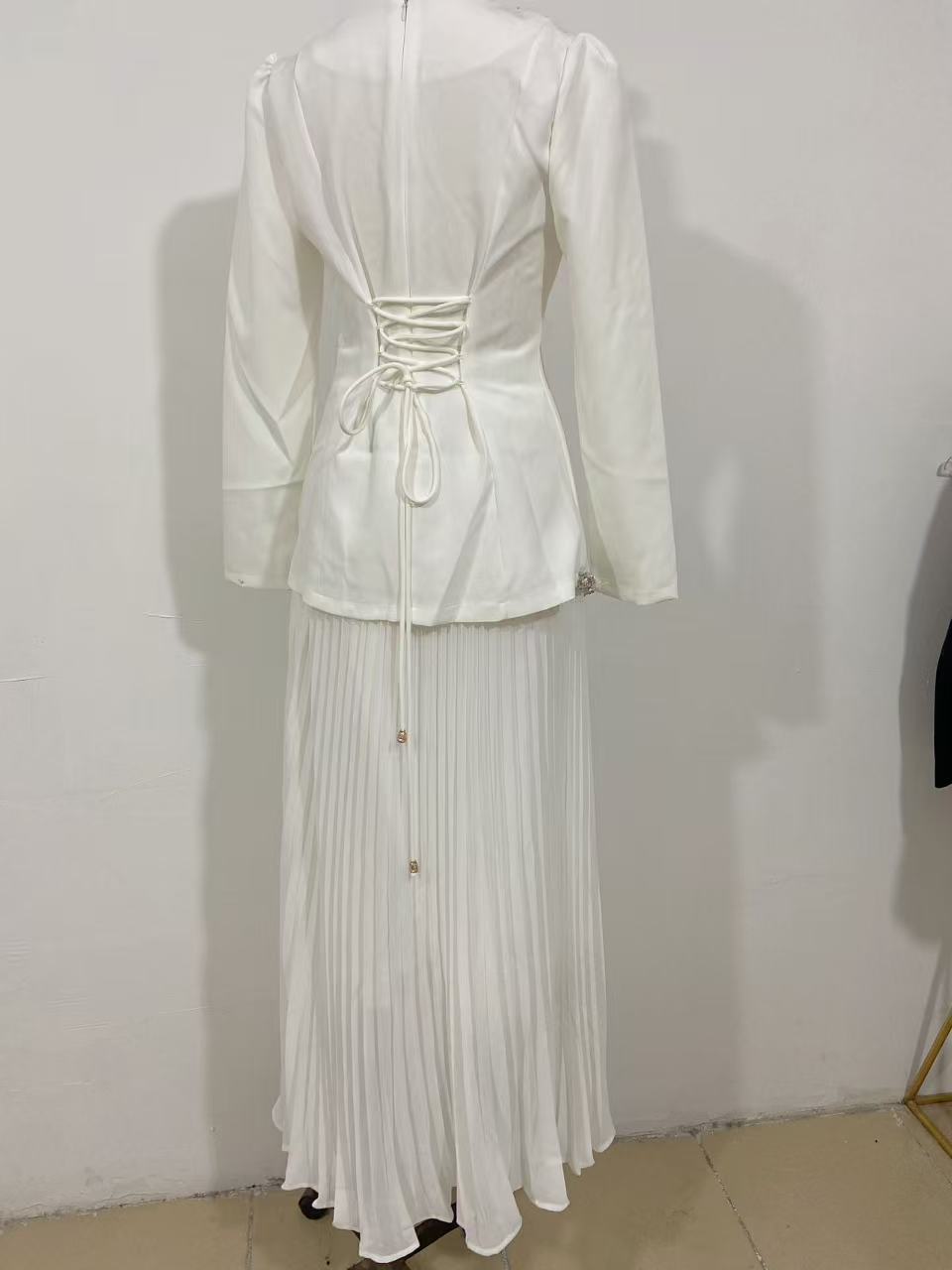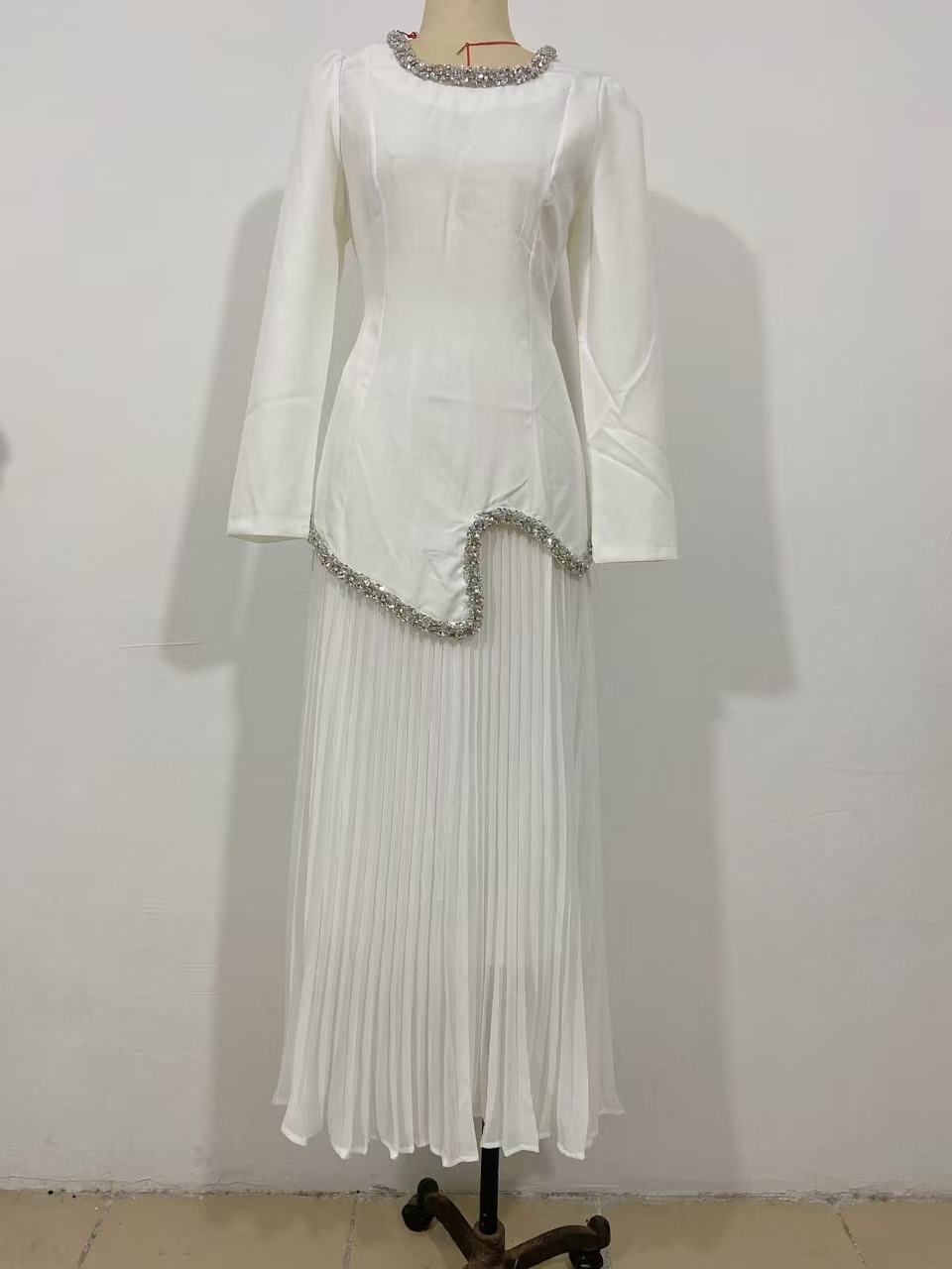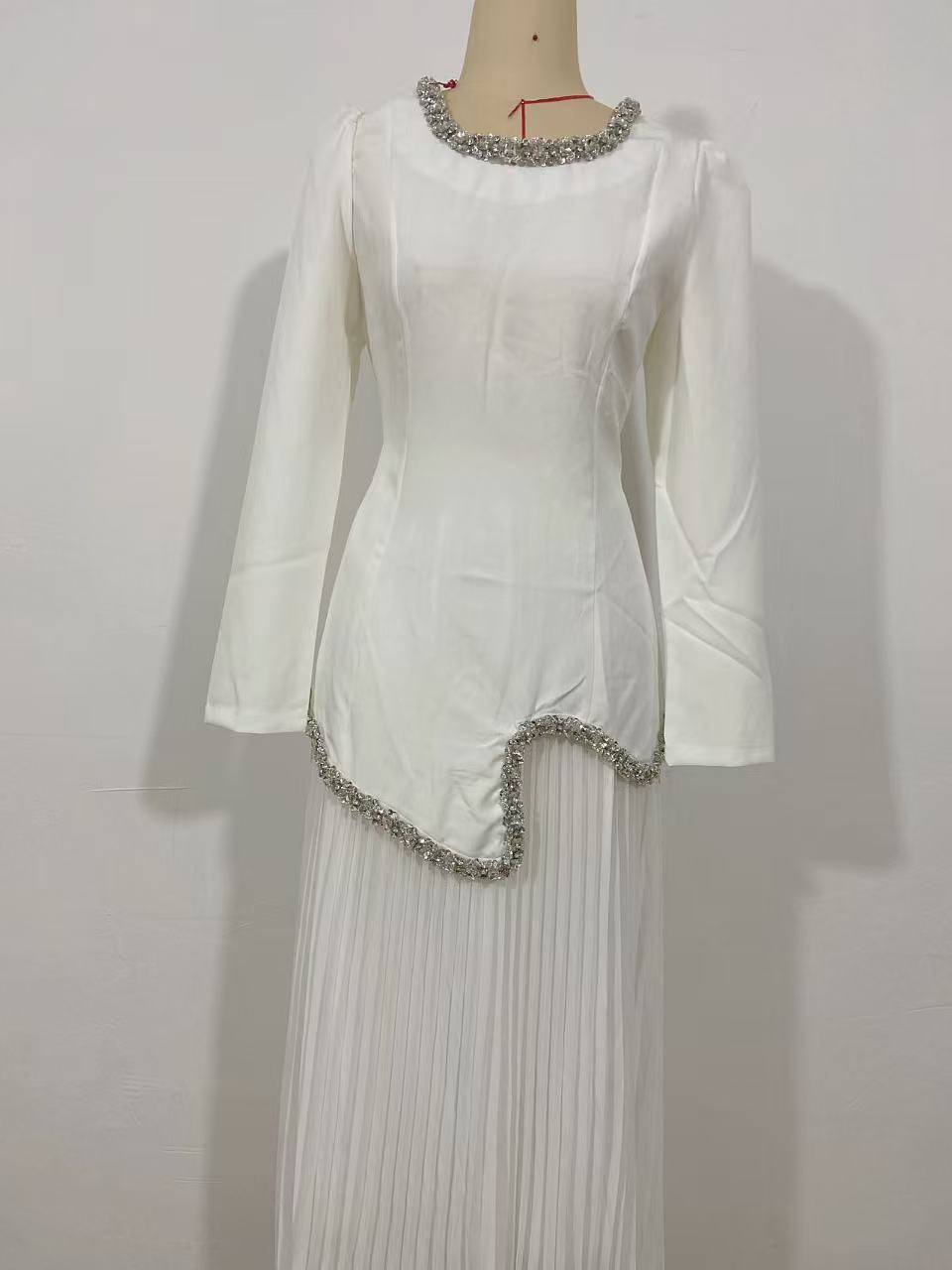 2025 봄 유럽과 미국 아마존 국경 간 독립 역 대외 무역 선구자 순수한 흰색 다이아몬드 가장자리 기질 원피스 세트