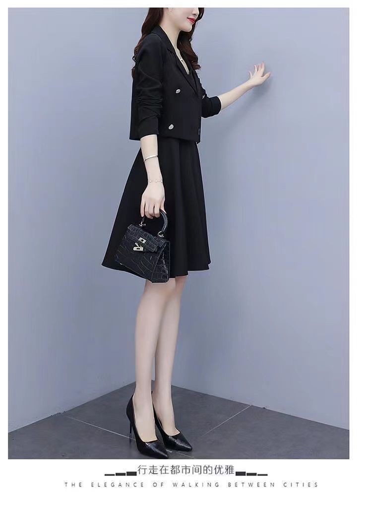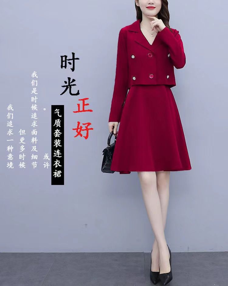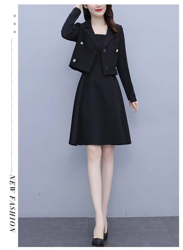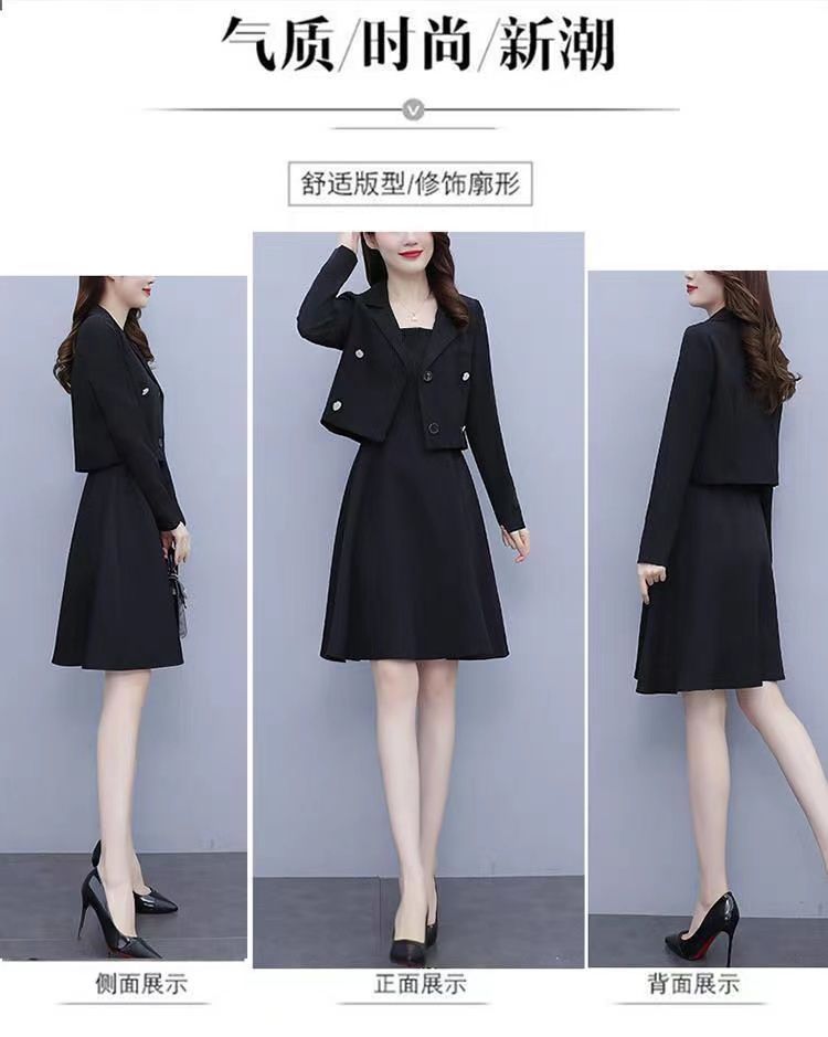 세트 여성 플러스 사이즈 작은 세트 슬링 투피스 세트 원피스 봄과 가을 새 스타일 통통한 자매 우아한 슬리밍 원피스
