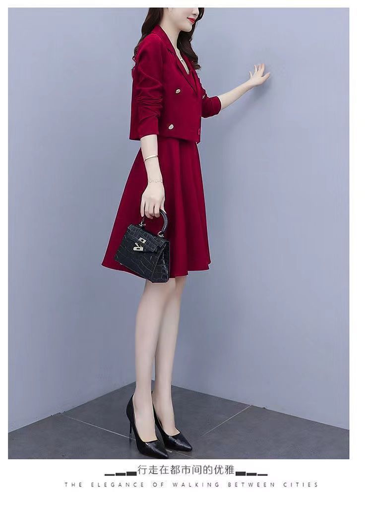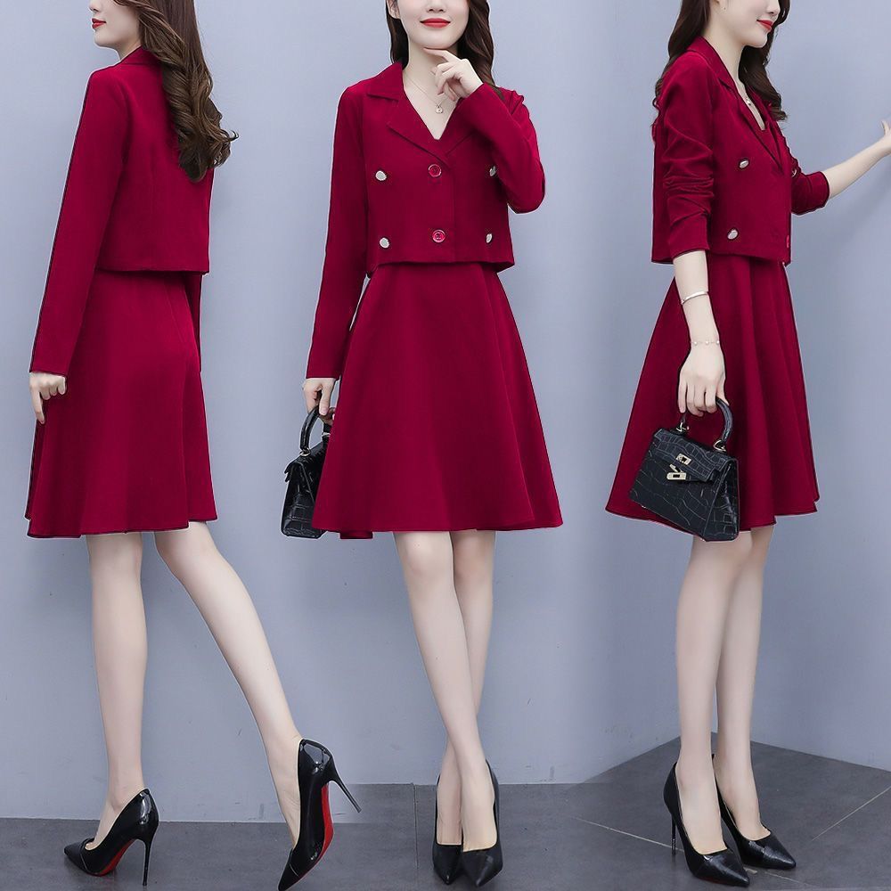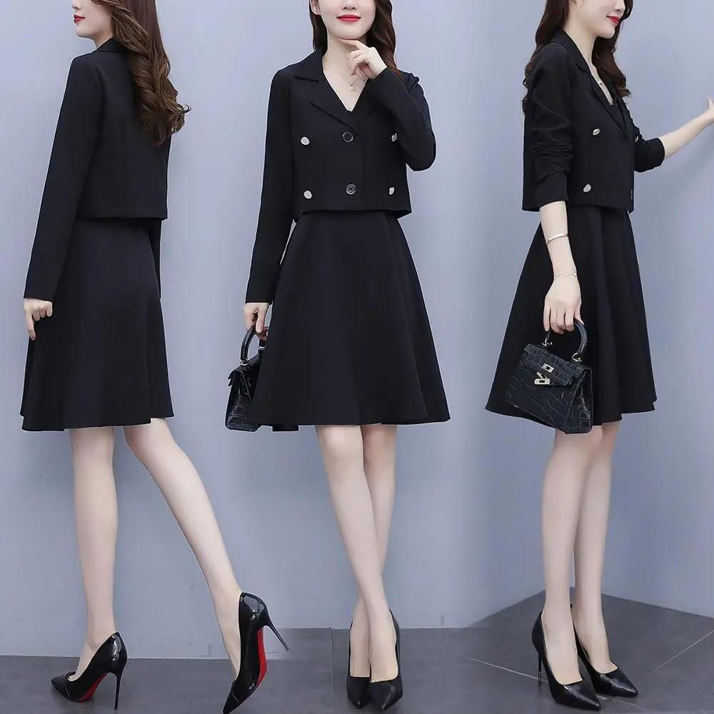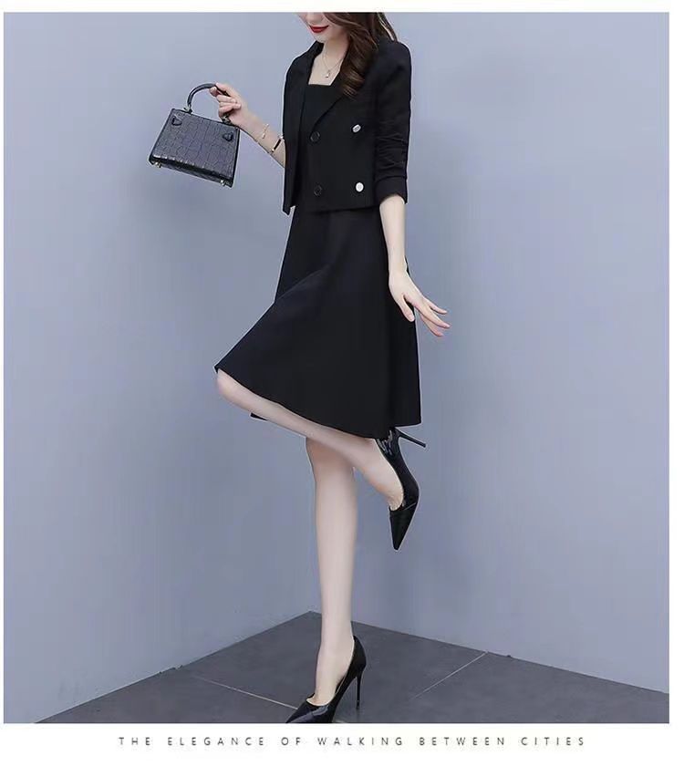 세트 여성 플러스 사이즈 작은 세트 슬링 투피스 세트 원피스 봄과 가을 새 스타일 통통한 자매 우아한 슬리밍 원피스