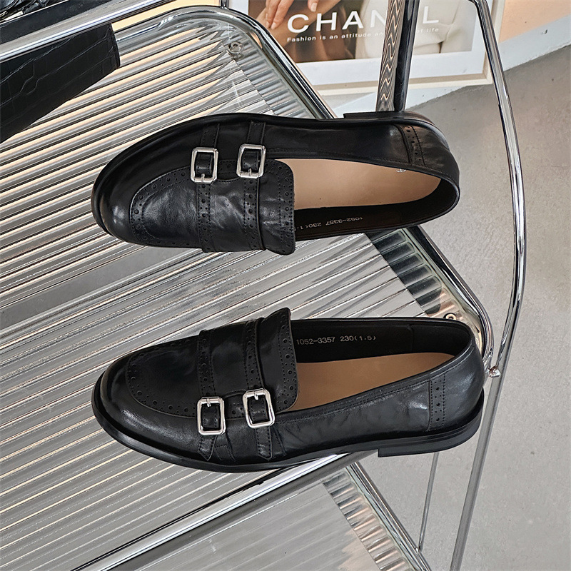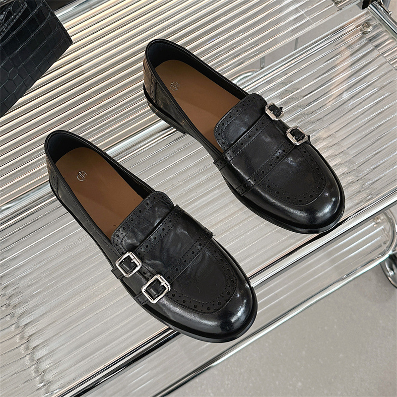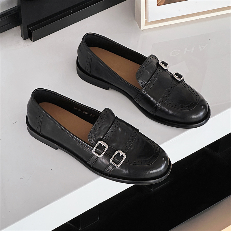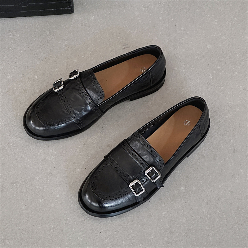 나비 O 더블 가죽 버클 패션 신발 여성의 2025 봄 새로운 Cowhide 플랫 숙녀 캐주얼 작은 가죽 신발 여성 신발스토어 가기