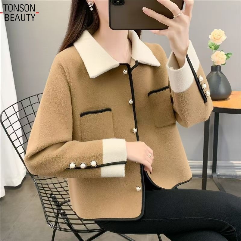 샤넬 스타일 울 코트 여성 봄과 가을 2024 새로운 한국 스타일 우아한