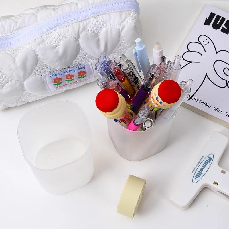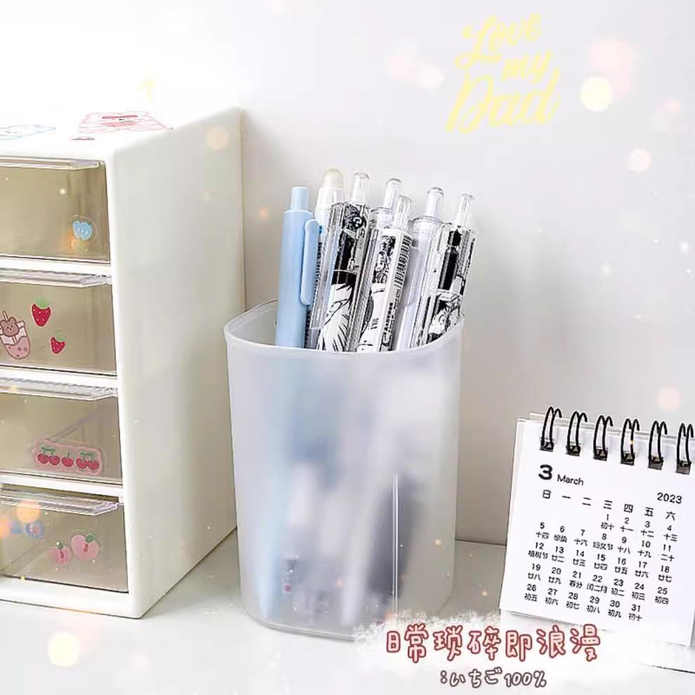둥근 젖빛 펜 홀더 간단한 스타일 데스크탑 저장 대용량 사무실 문구 잡화 수납 상자스토어 가기