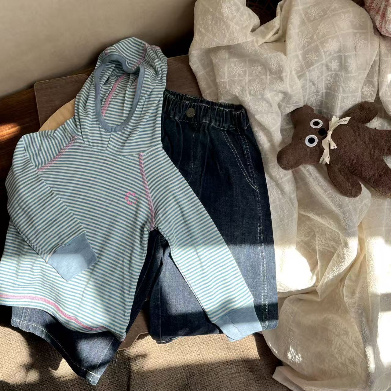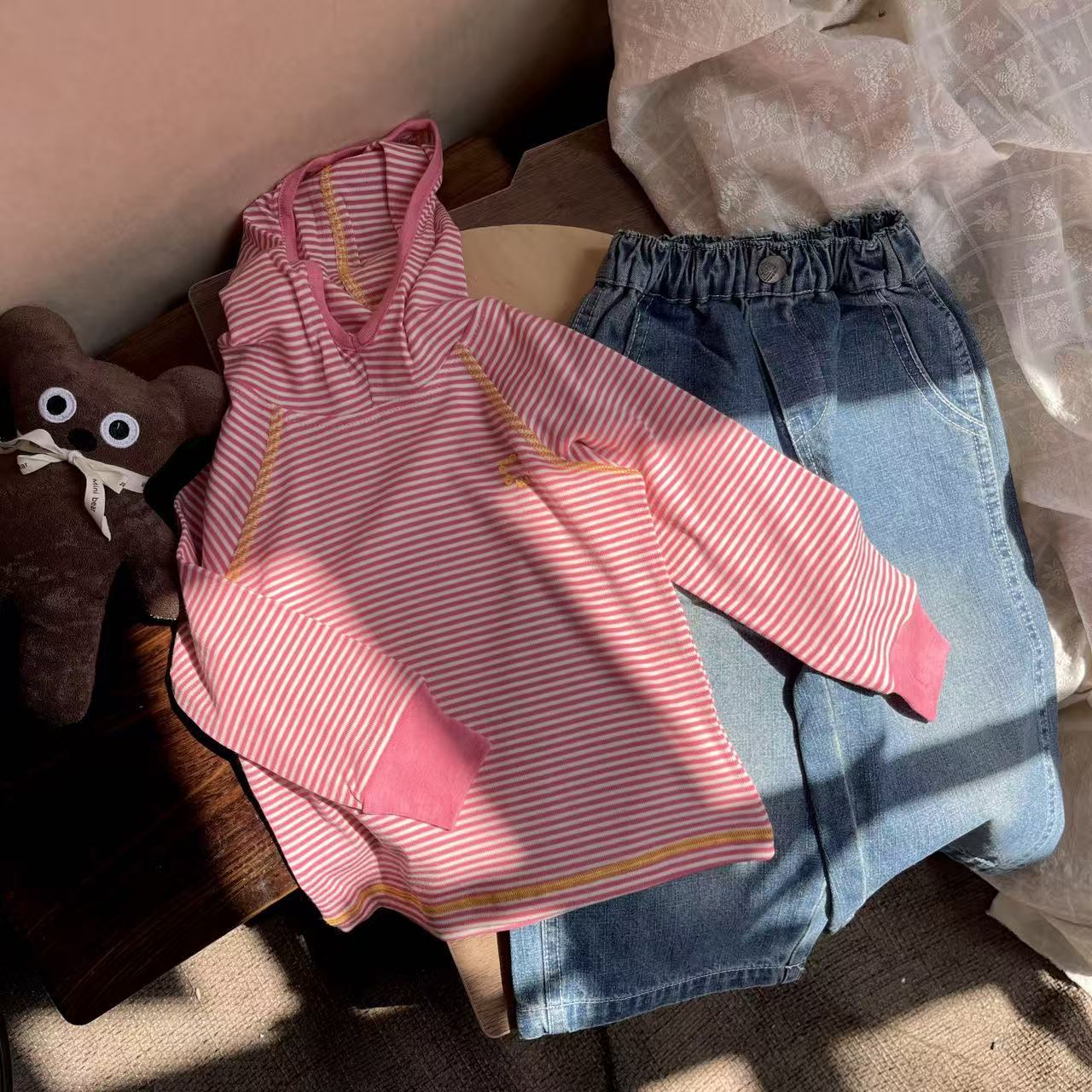 즉시 구매 가능【필수템】여아 가을 텐셀 울 후드 이너웨어 아기 산악풍 스타일 긴팔 상의