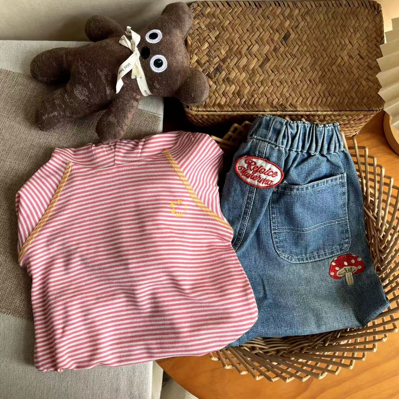 즉시 구매 가능【필수템】여아 가을 텐셀 울 후드 이너웨어 아기 산악풍 스타일 긴팔 상의스토어 가기