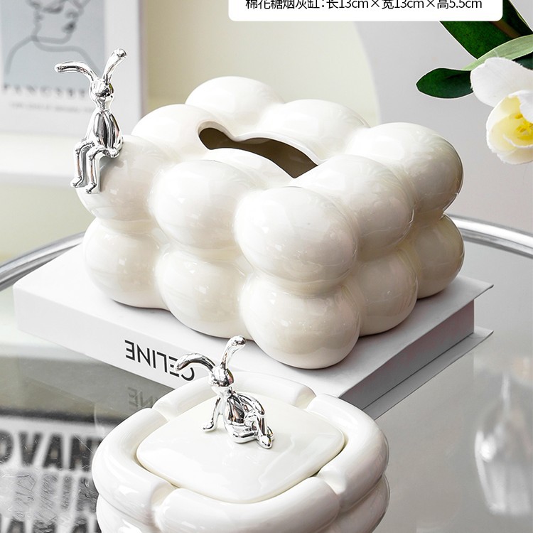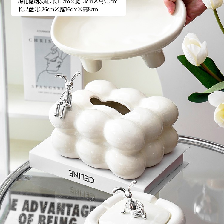 • 【토끼】밀크 화이트 클라우드 티슈 박스 + 밀크 화이트 클라우드 재떨이