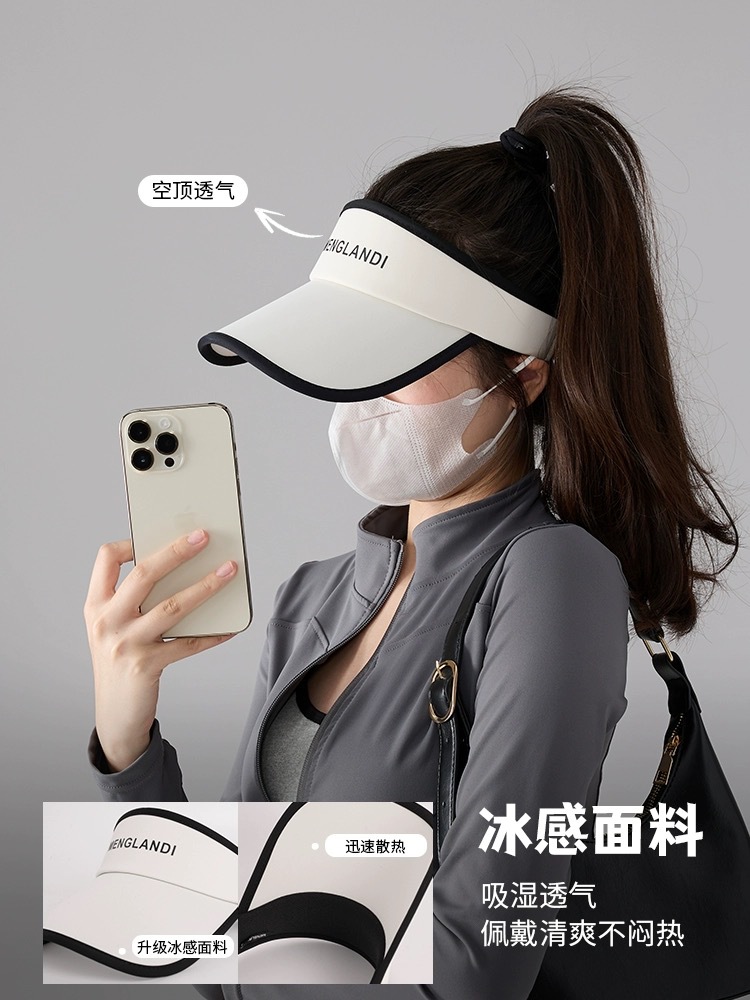 모자 여성 스포츠 빈 모자 아이스 실크 자외선 차양 모자 야외 얼굴-작은 달리기 해변 태양 모자