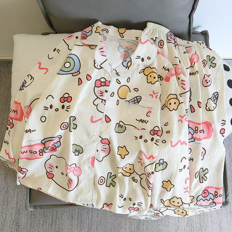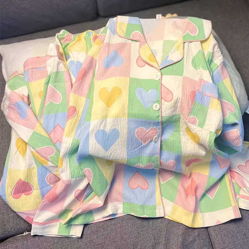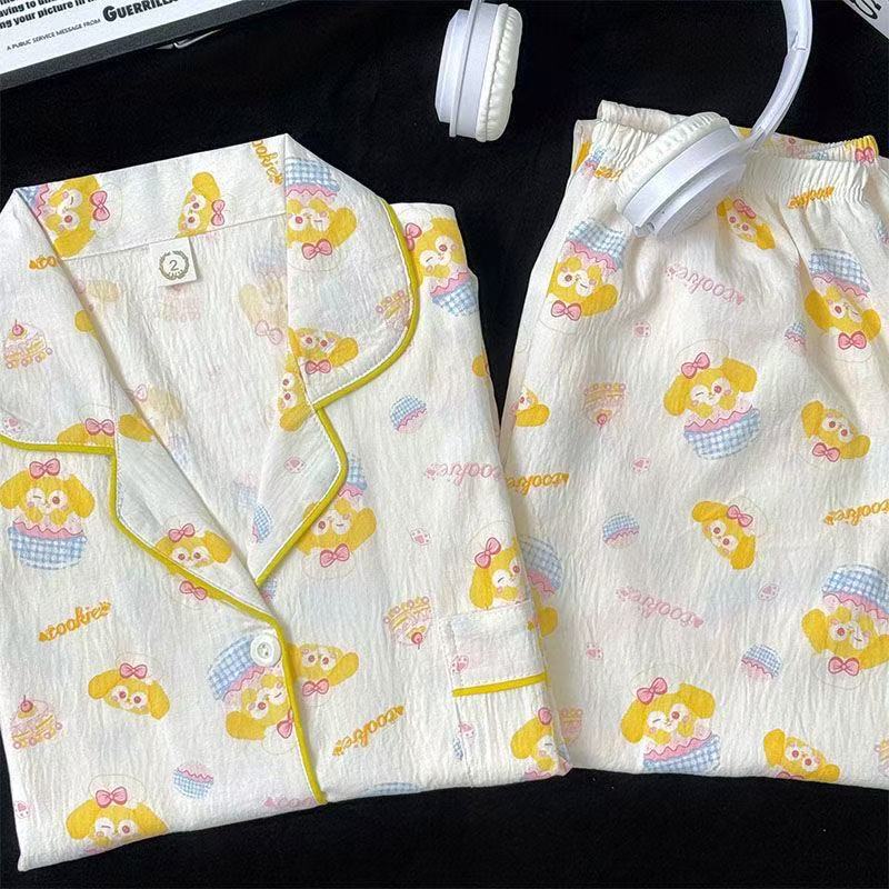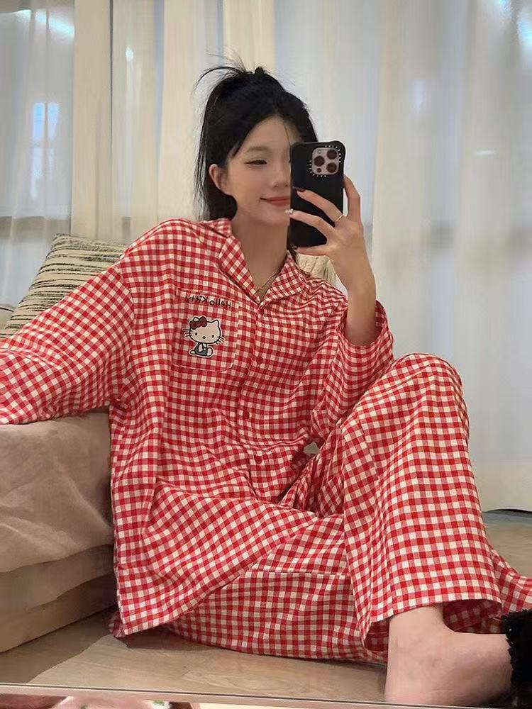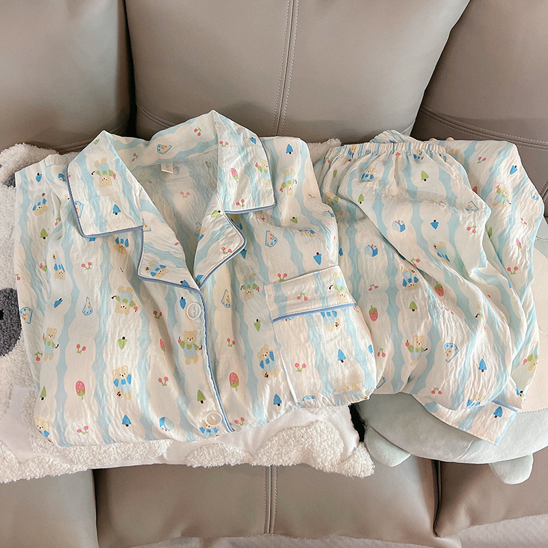 새로운 구름 면화 파자마 여성 봄과 가을 긴 소매 바지를 입을 수 있습니다 얇은 가정 의류 세트 국경 도매