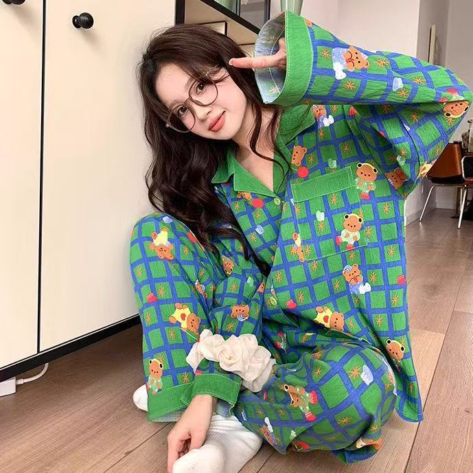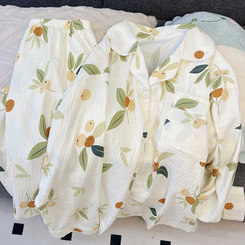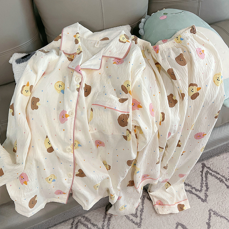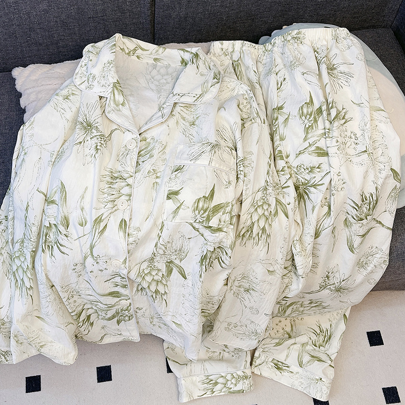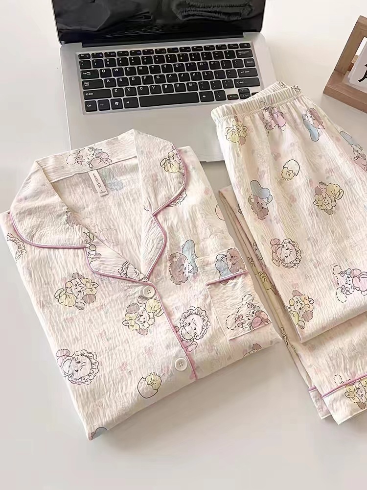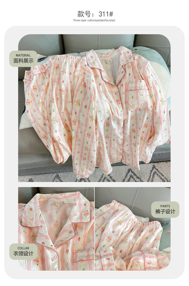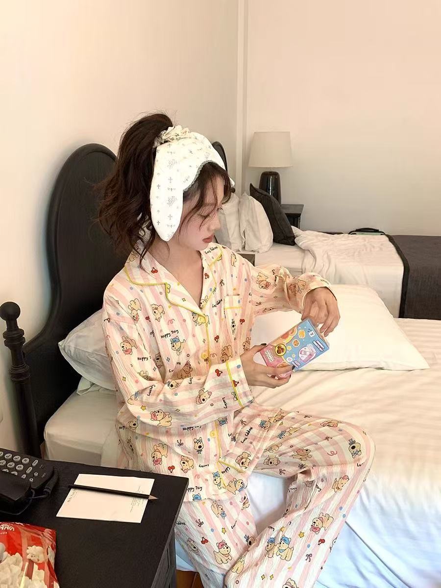 새로운 구름 면화 파자마 여성 봄과 가을 긴 소매 바지를 입을 수 있습니다 얇은 가정 의류 세트 국경 도매스토어 가기