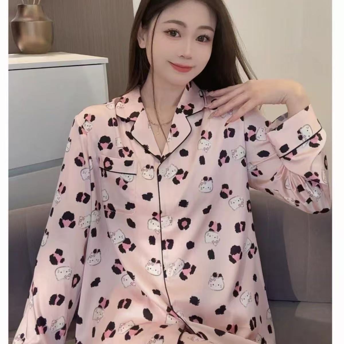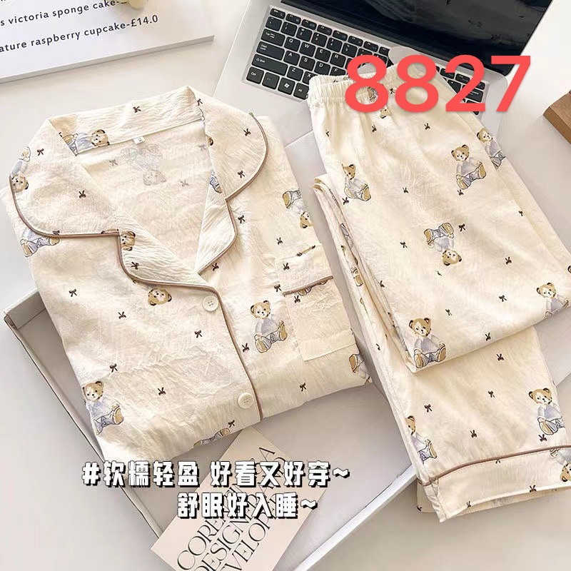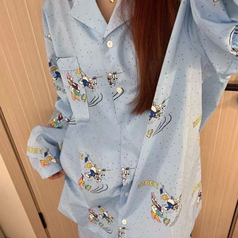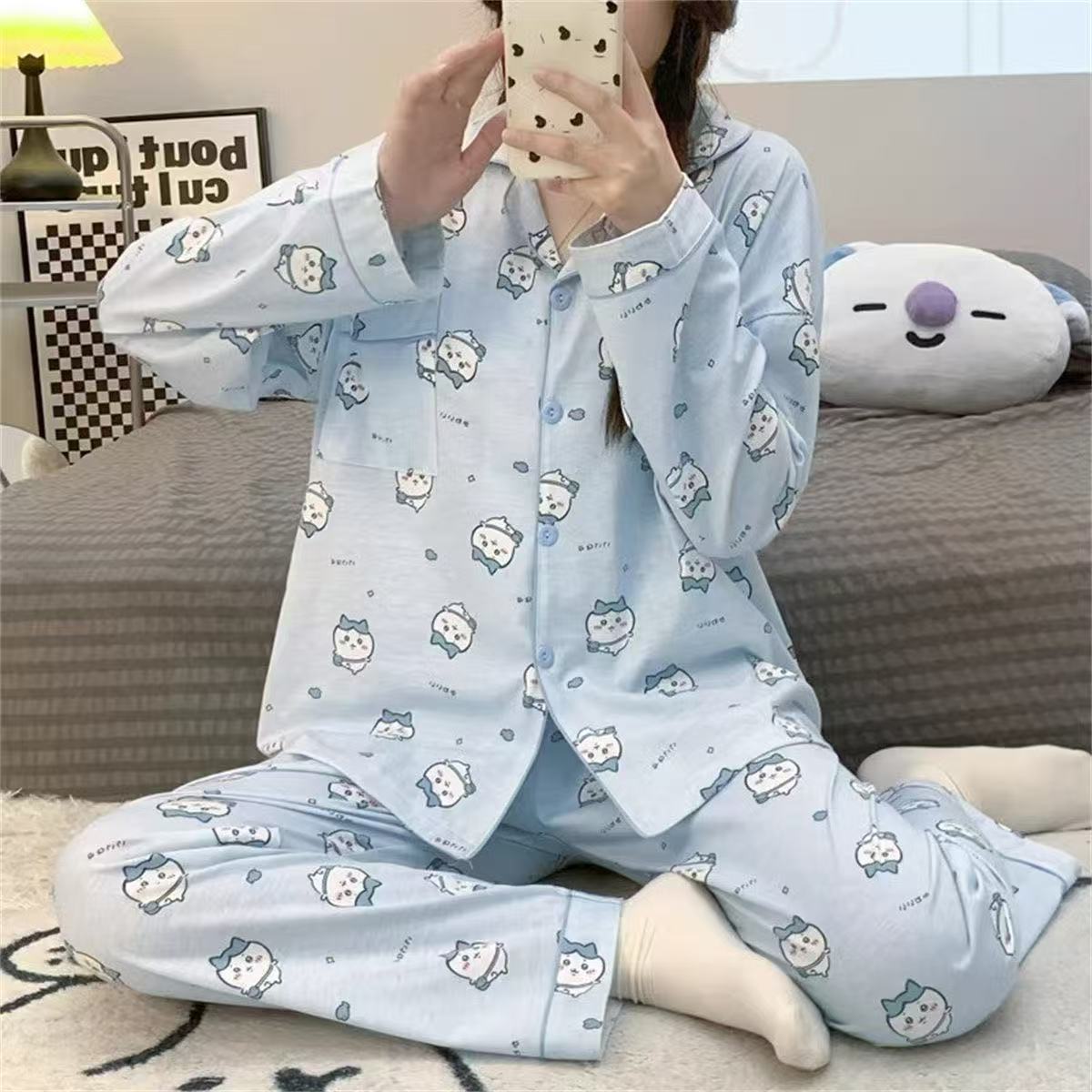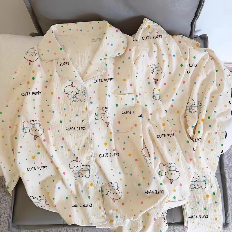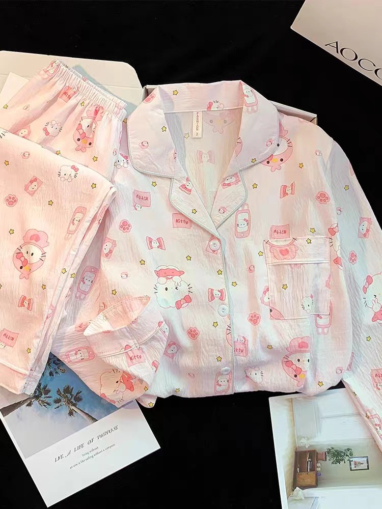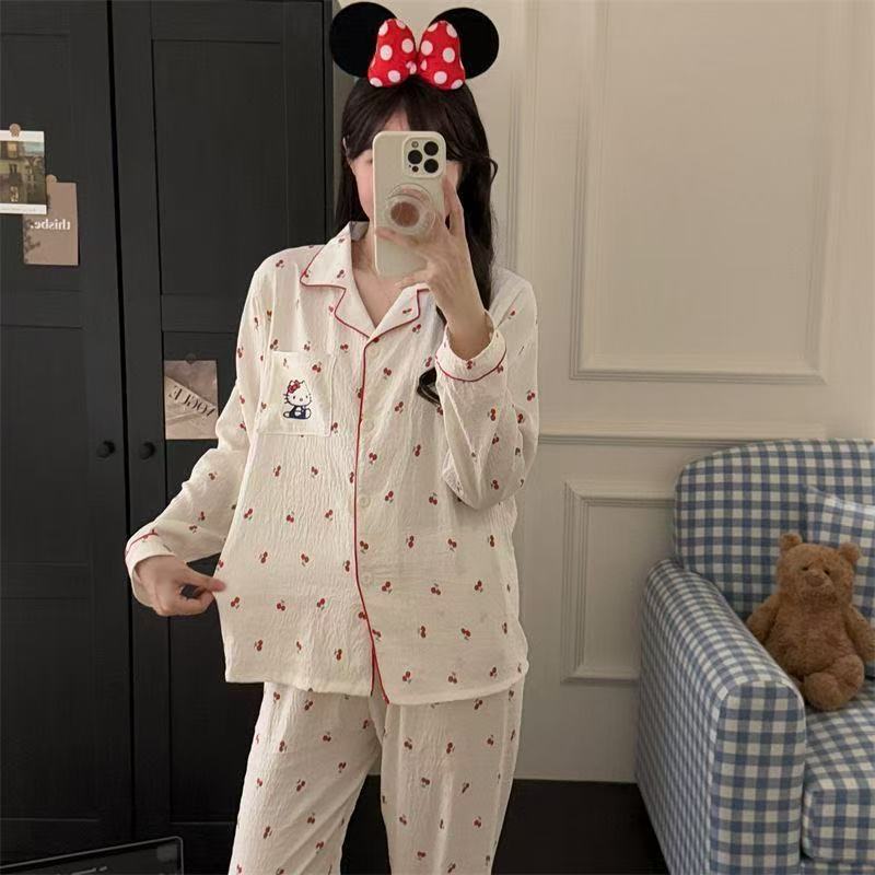 새로운 구름 면화 파자마 여성 봄과 가을 긴 소매 바지를 입을 수 있습니다 얇은 가정 의류 세트 국경 도매스토어 가기