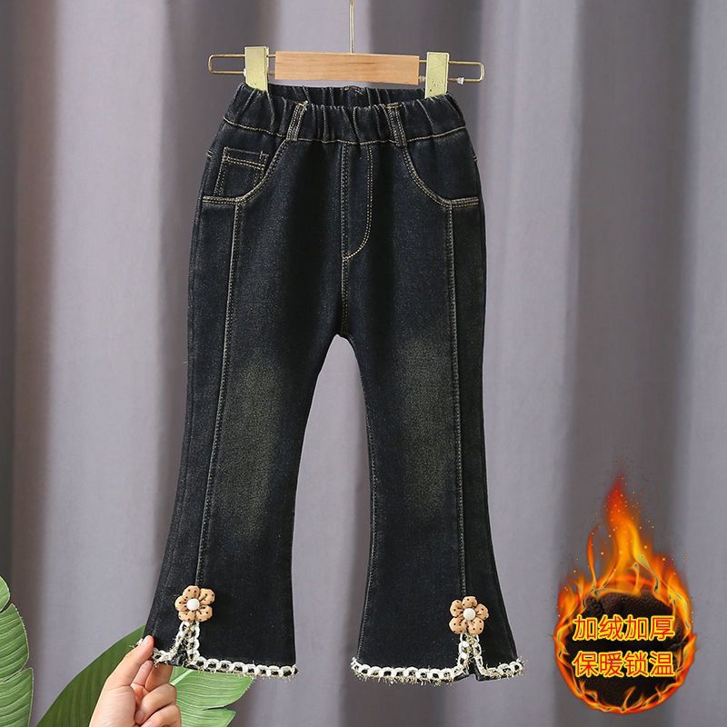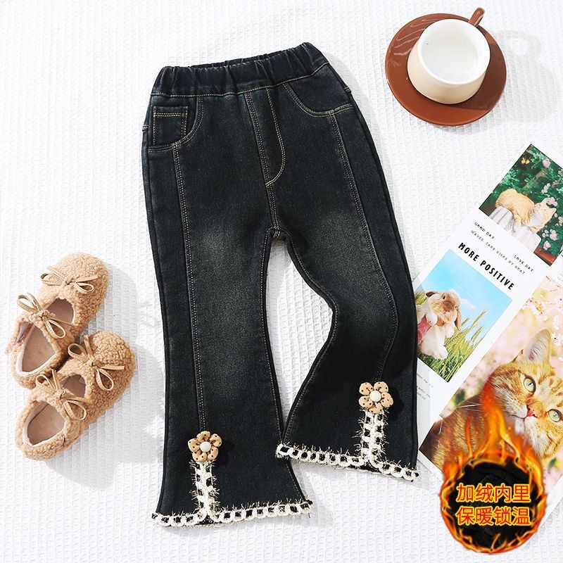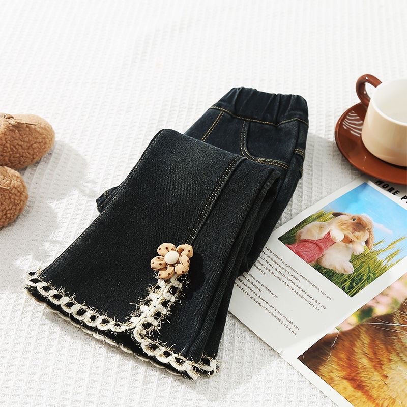 봄과 가을 소녀 청바지 아기의 서양식 어린이 성격 유행 한국 스타일 레이스 플라워 스플릿 레이스 플래 팬츠스토어 가기