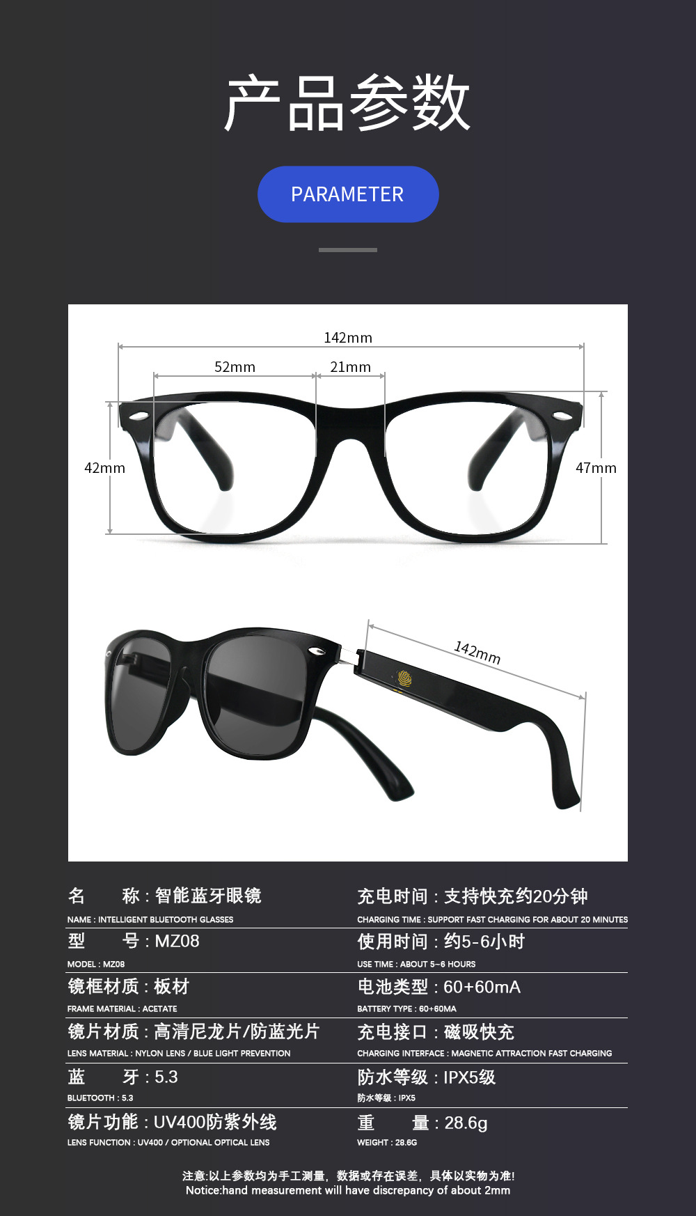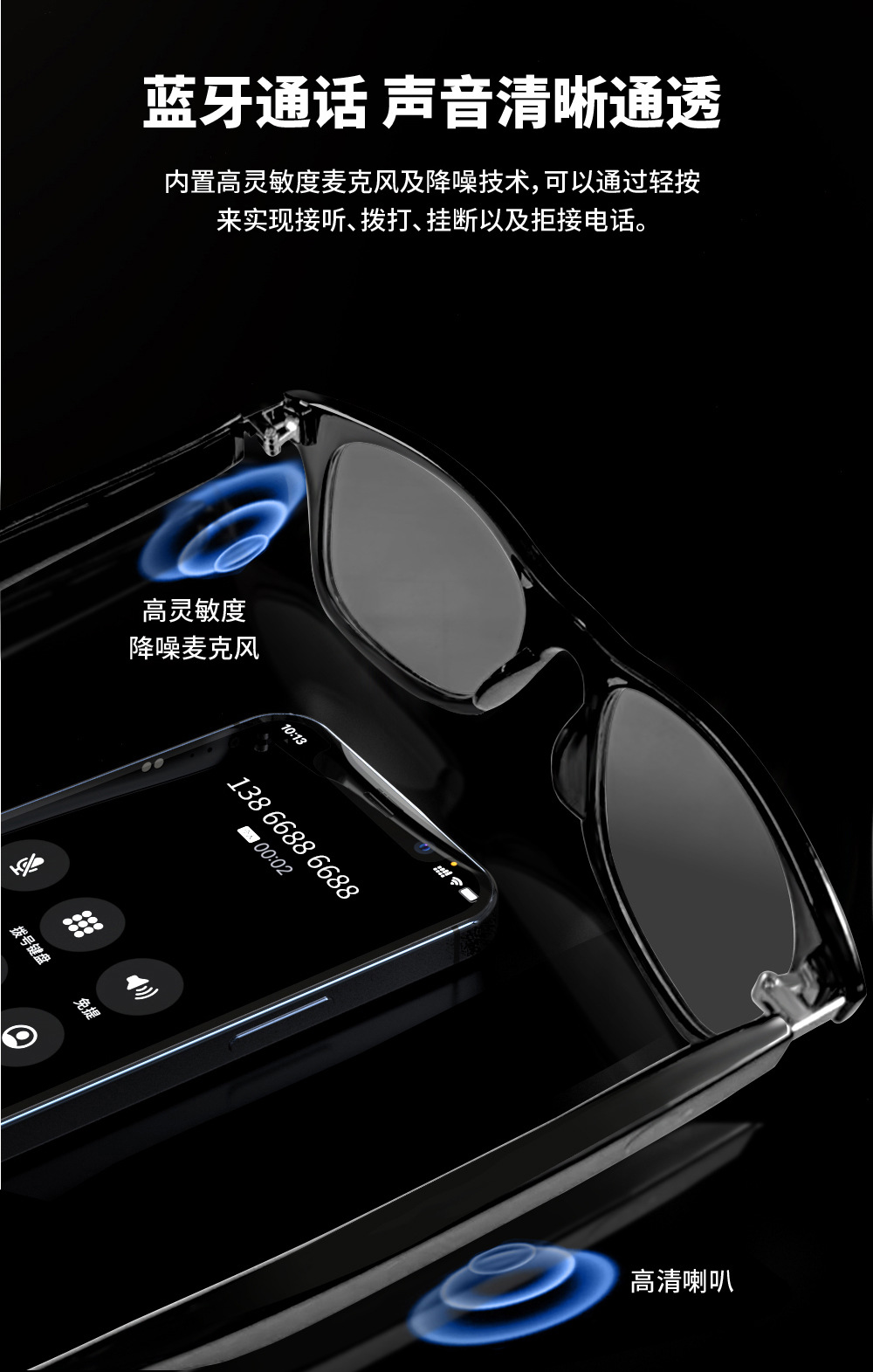 스마트 편광 렌즈 블루투스 안경 MZ08 스마트 안경 노래 듣기 및 말하는 선글라스 짧은 비전 필름 선글라스로 장착 할 수 있습니다.