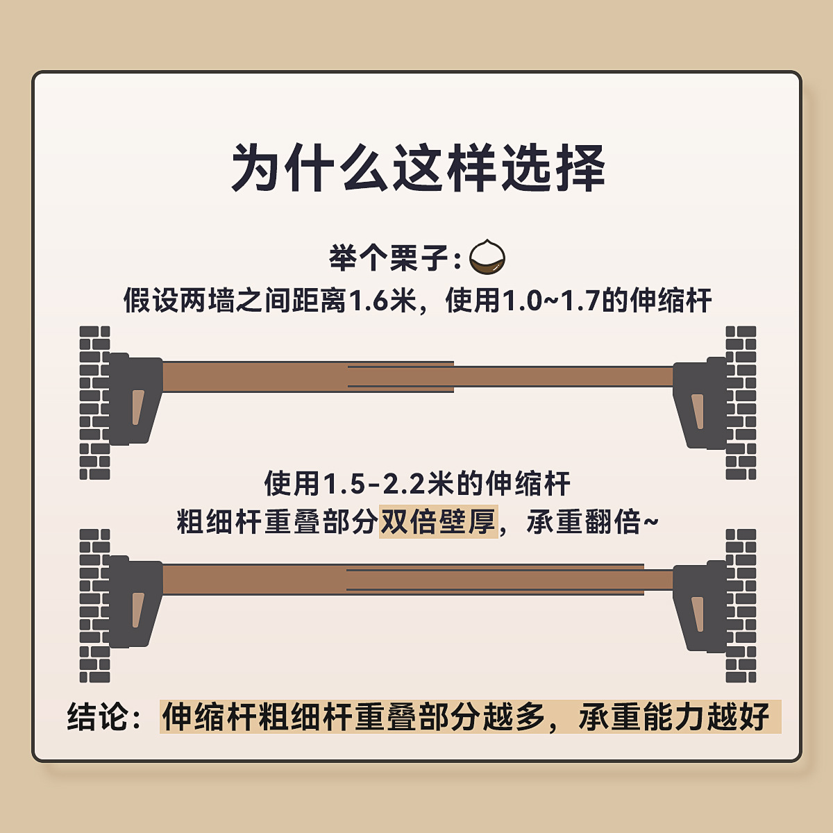 • 원하는 대로 신축 가능 : 1.5m ~ 2.2m 내부 설치 [대략 내하중 165kg ]