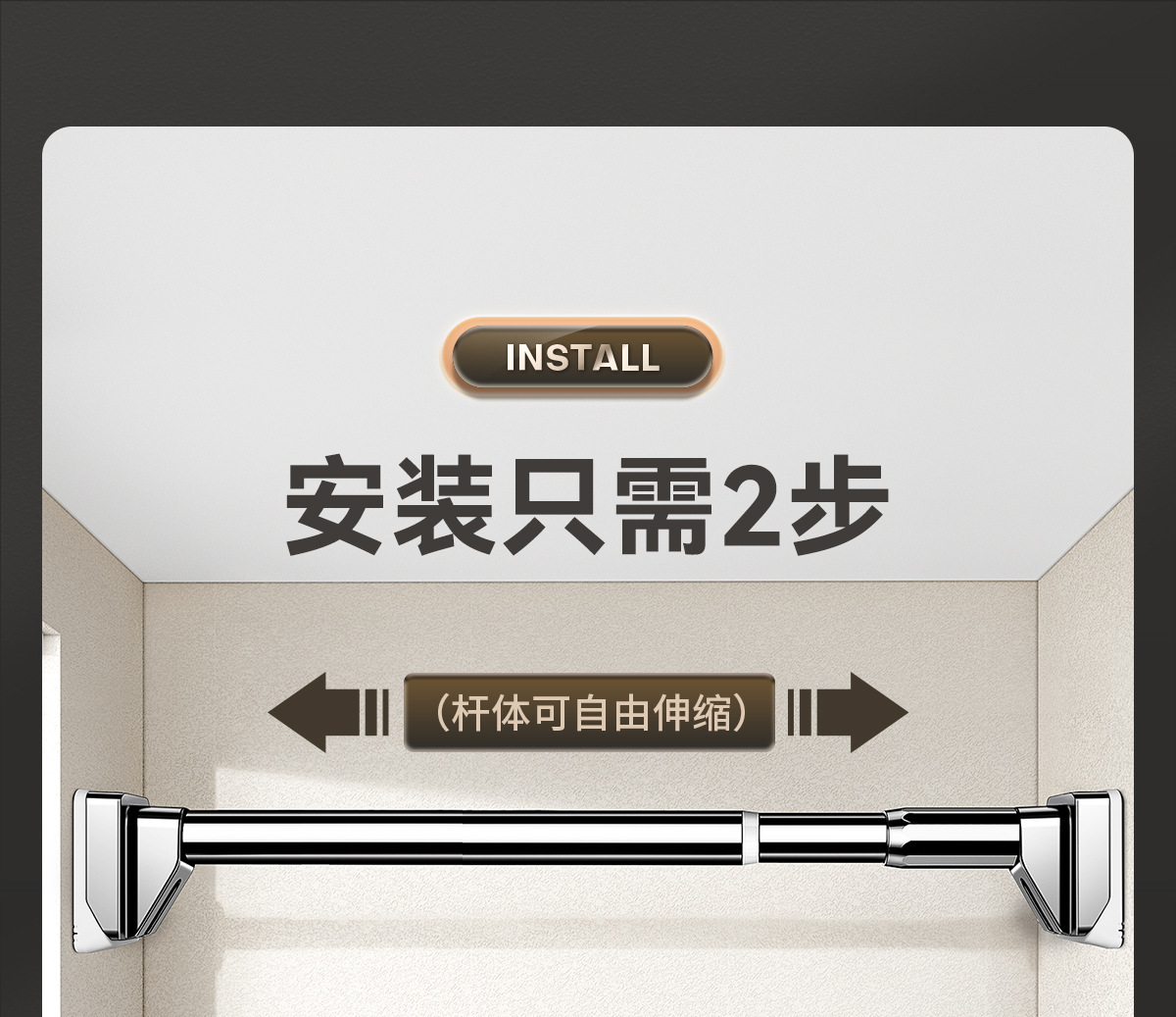 • 원하는 대로 신축 가능 : 1.9m ~ 2.6m 내부 설치 [대략 내하중 145kg ]