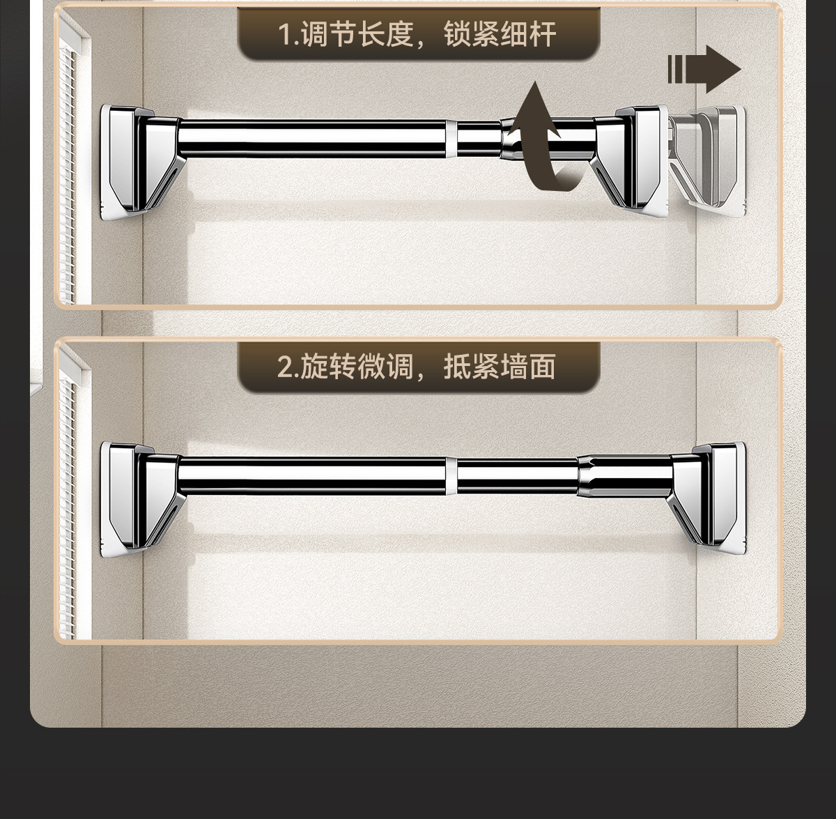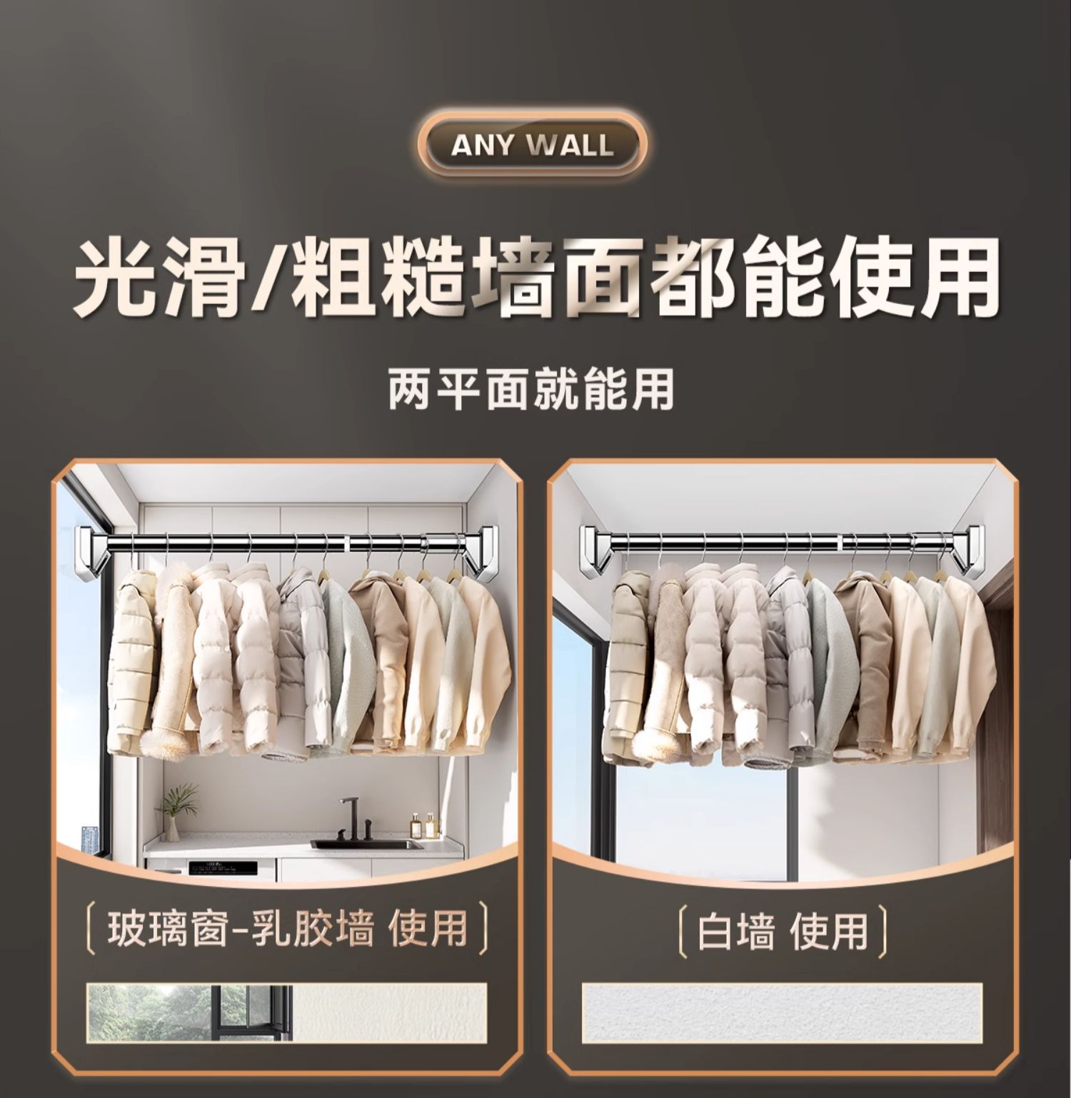 옷 극 텔레스코픽 비 천공 발코니 벽 고정 건조 랙 화장실 스트럿 실내 가정용 의류 극