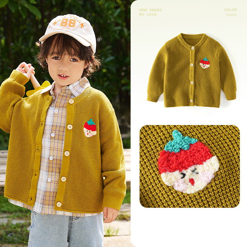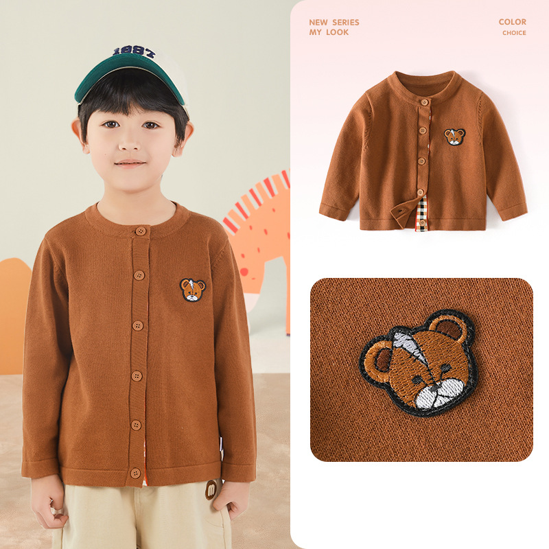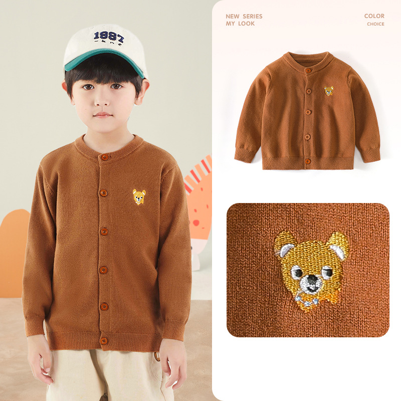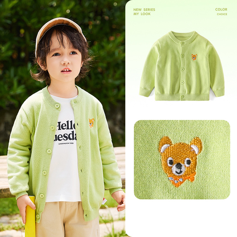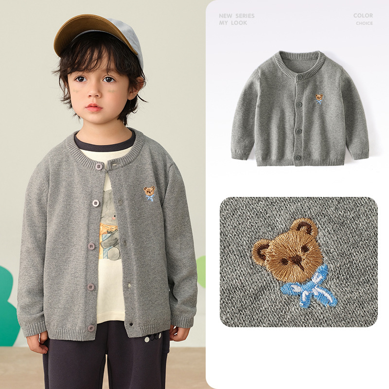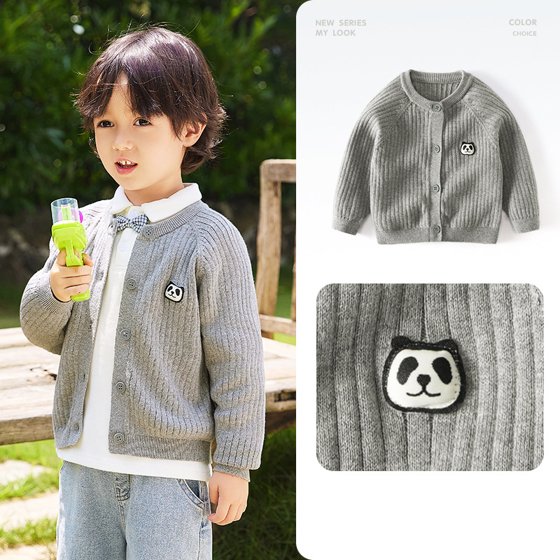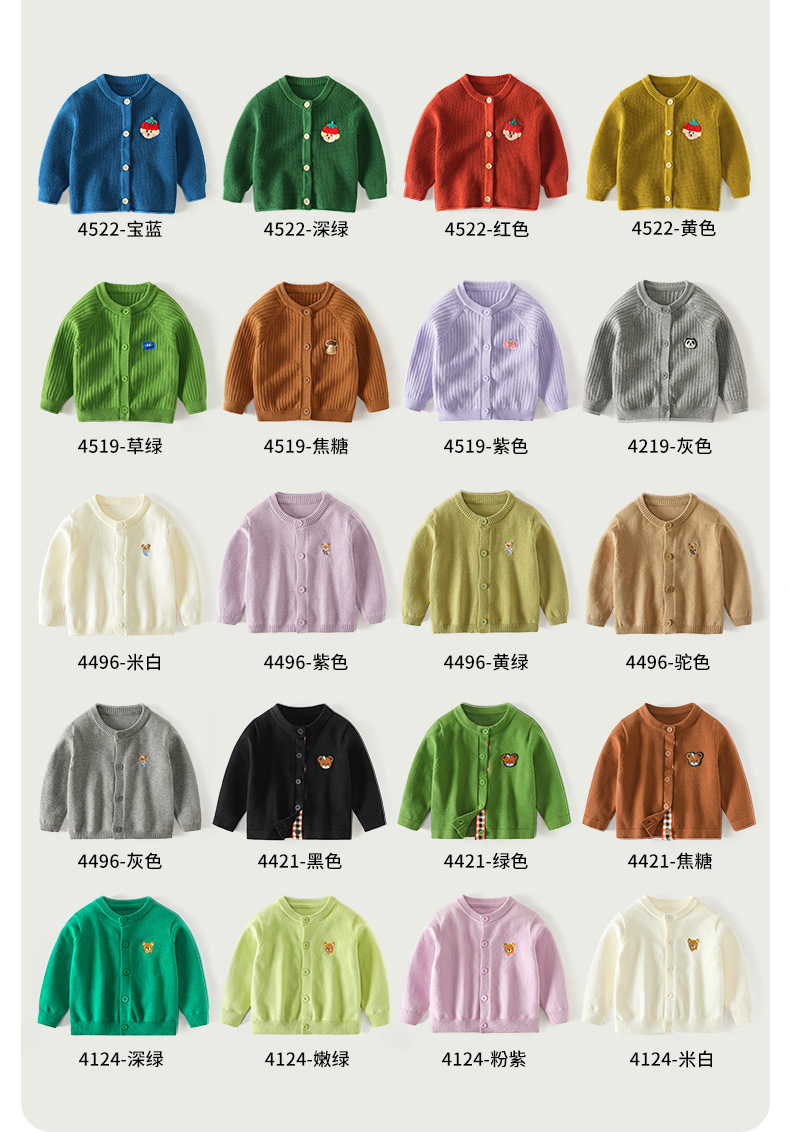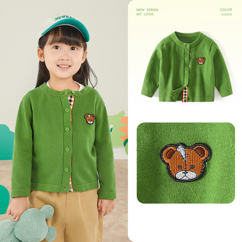 봄 새로운 어린이 스웨터 클래스 소년 소녀 및 어린이 아기의 단색 크루 넥 스웨터 재킷을위한 니트 카디건