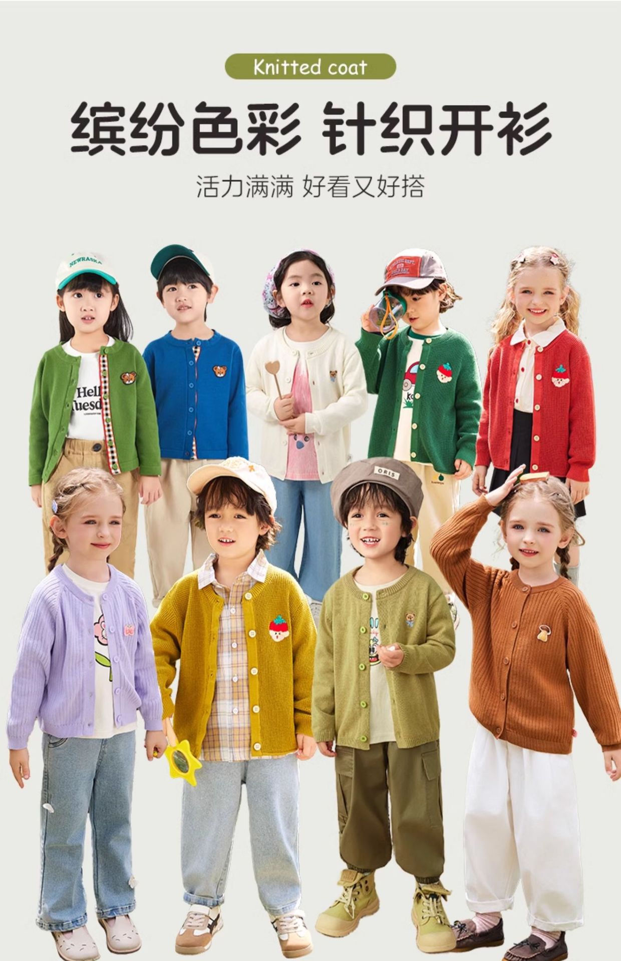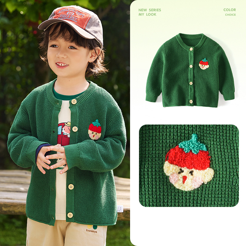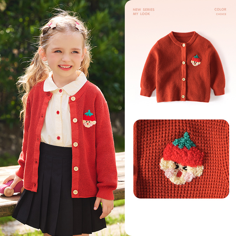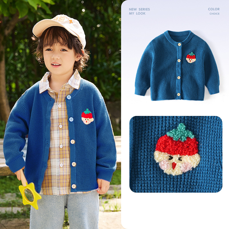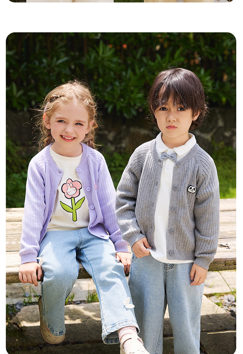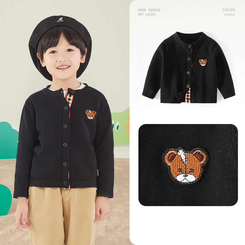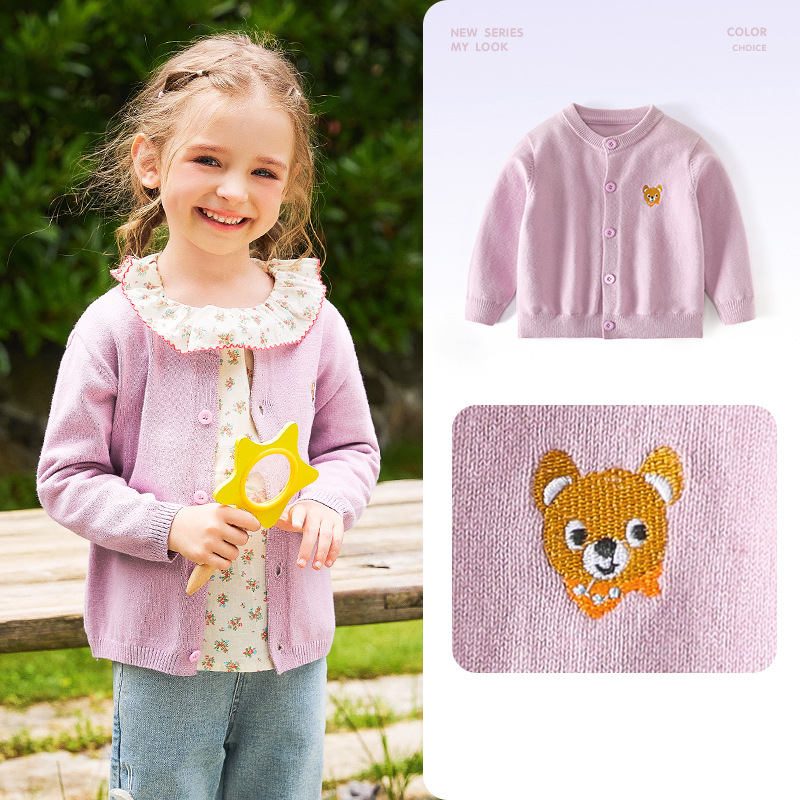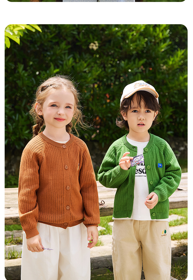 봄 새로운 어린이 스웨터 클래스 소년 소녀 및 어린이 아기의 단색 크루 넥 스웨터 재킷을위한 니트 카디건