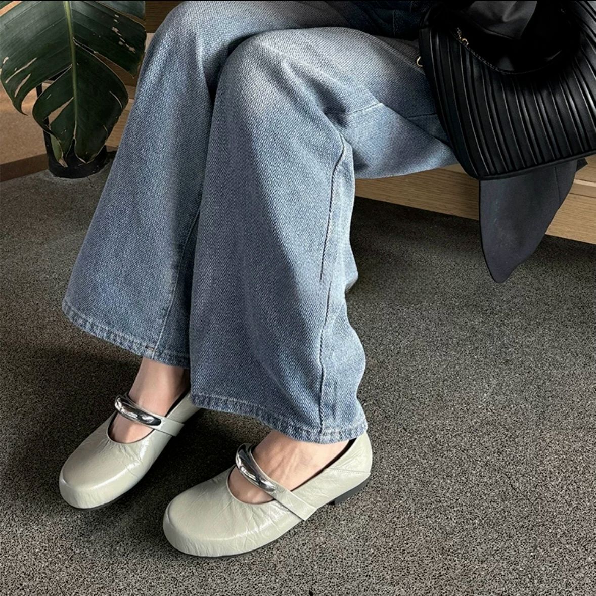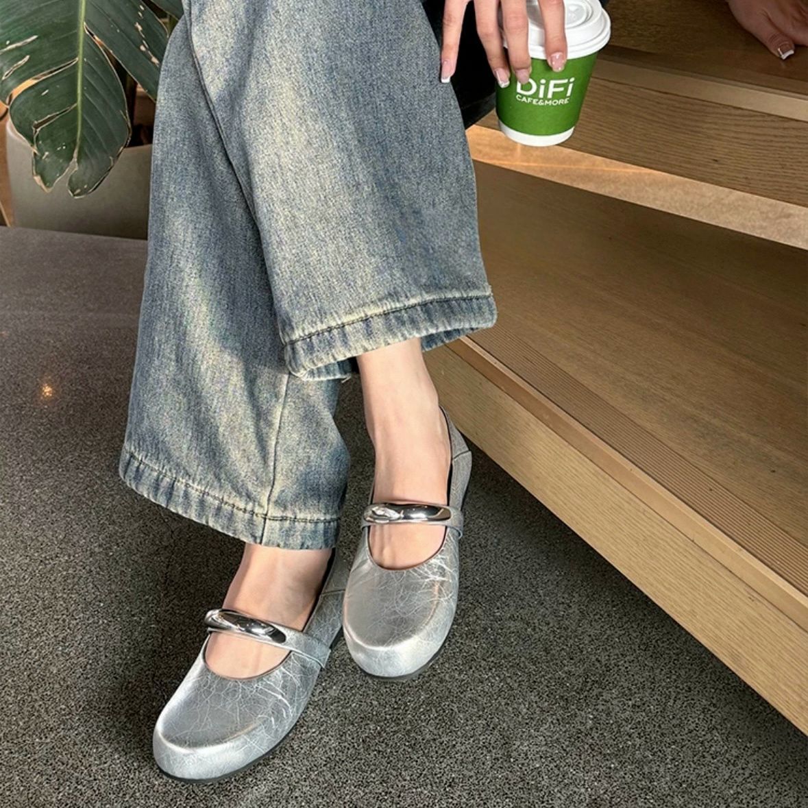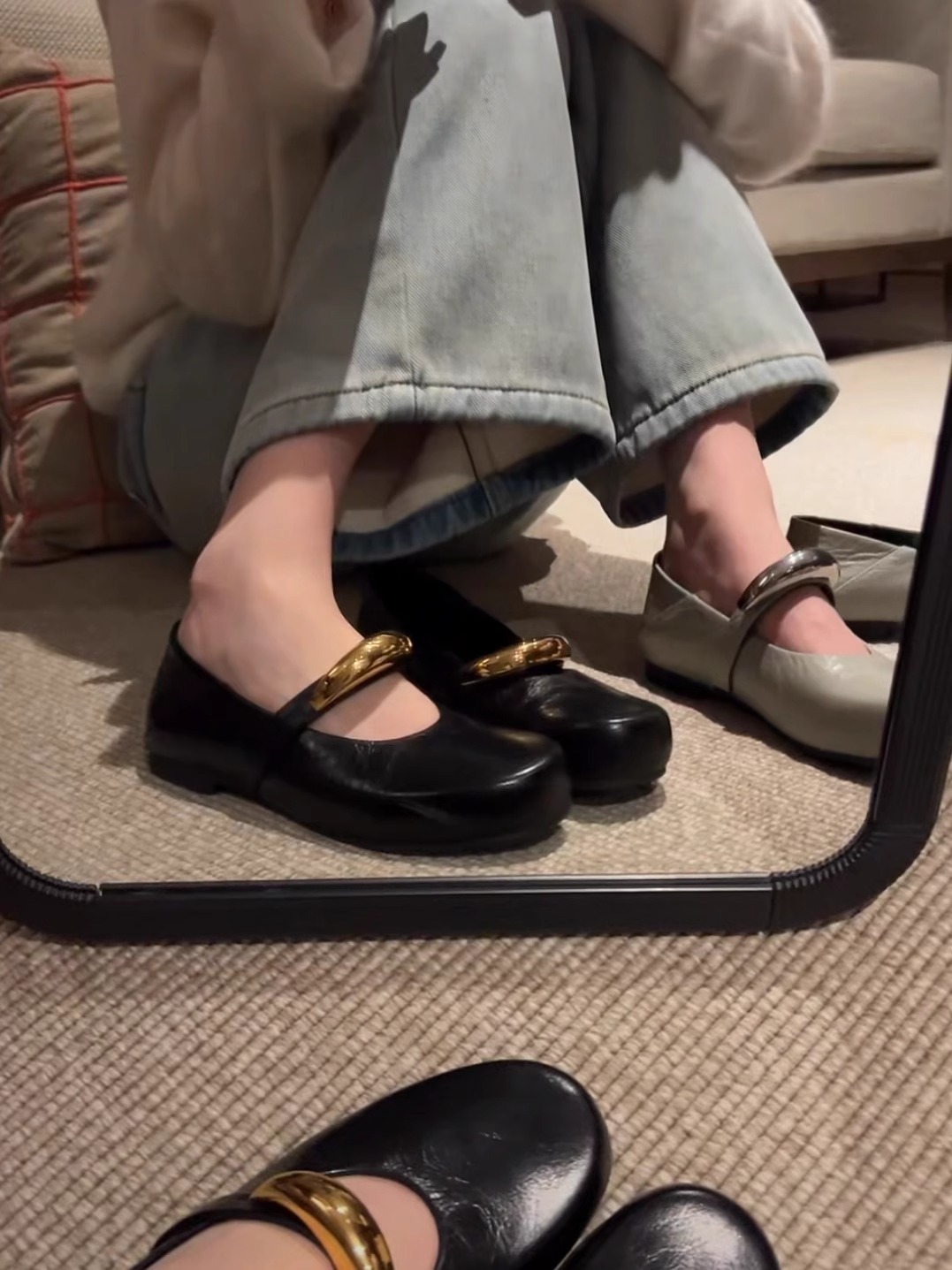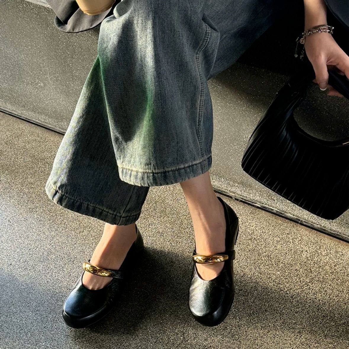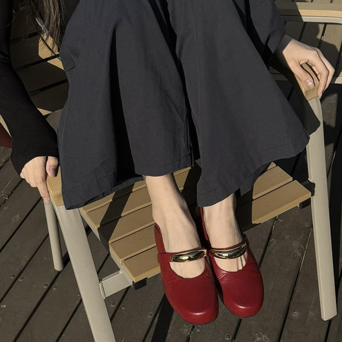 소프트 가죽 손 인쇄 레드 메리 제인 신발 2025 봄과 여름 새로운 올 매치 얕은 평면 캐주얼 신발