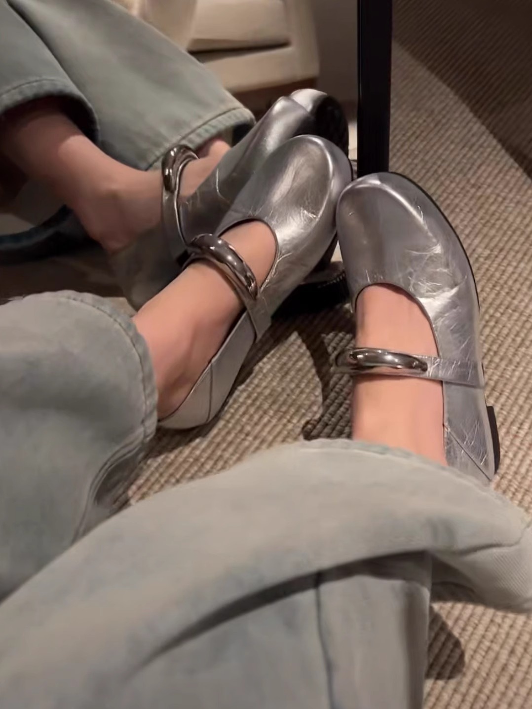 소프트 가죽 손 인쇄 레드 메리 제인 신발 2025 봄과 여름 새로운 올 매치 얕은 평면 캐주얼 신발스토어 가기