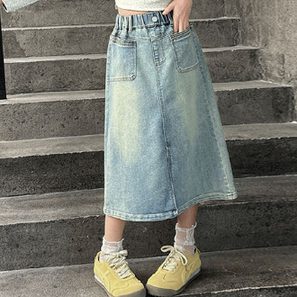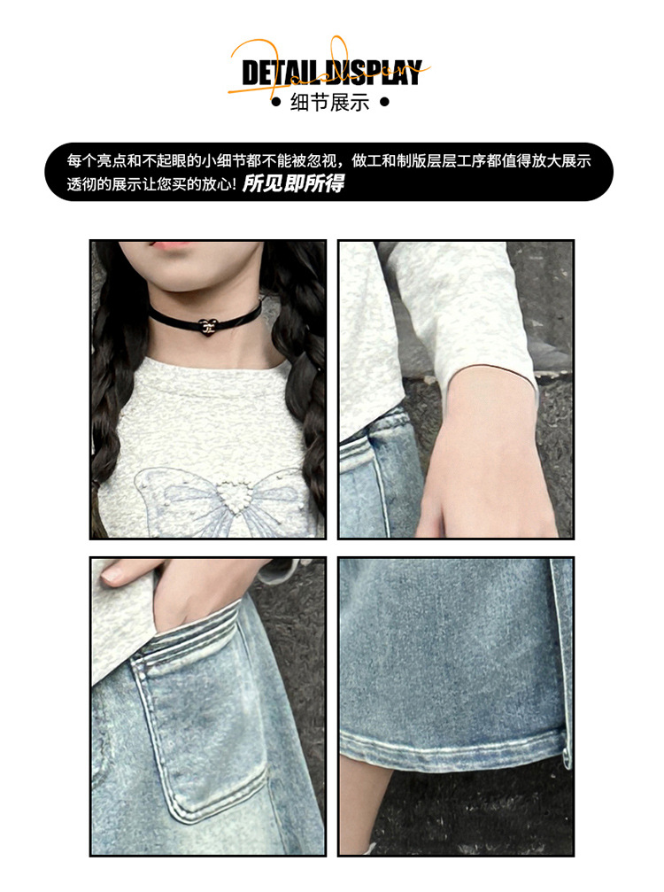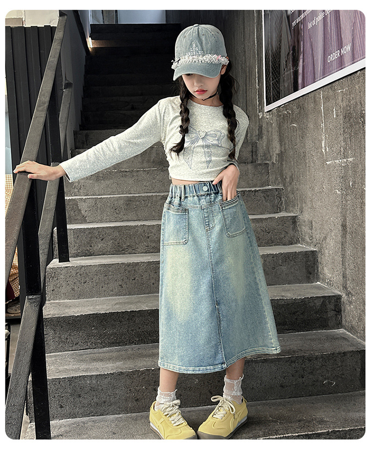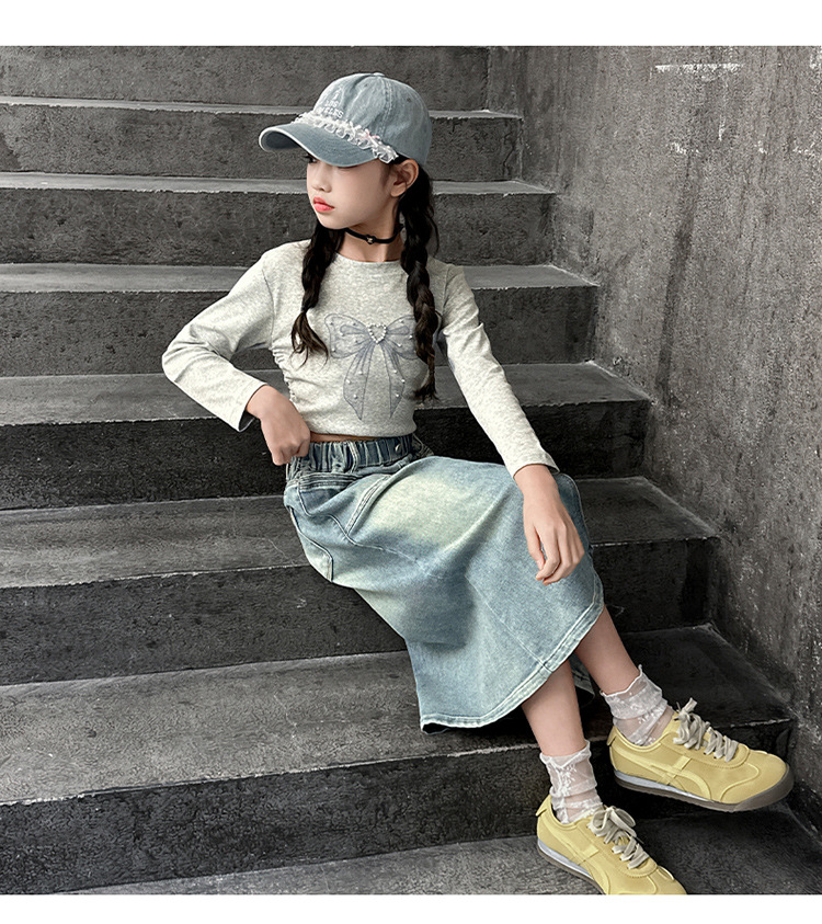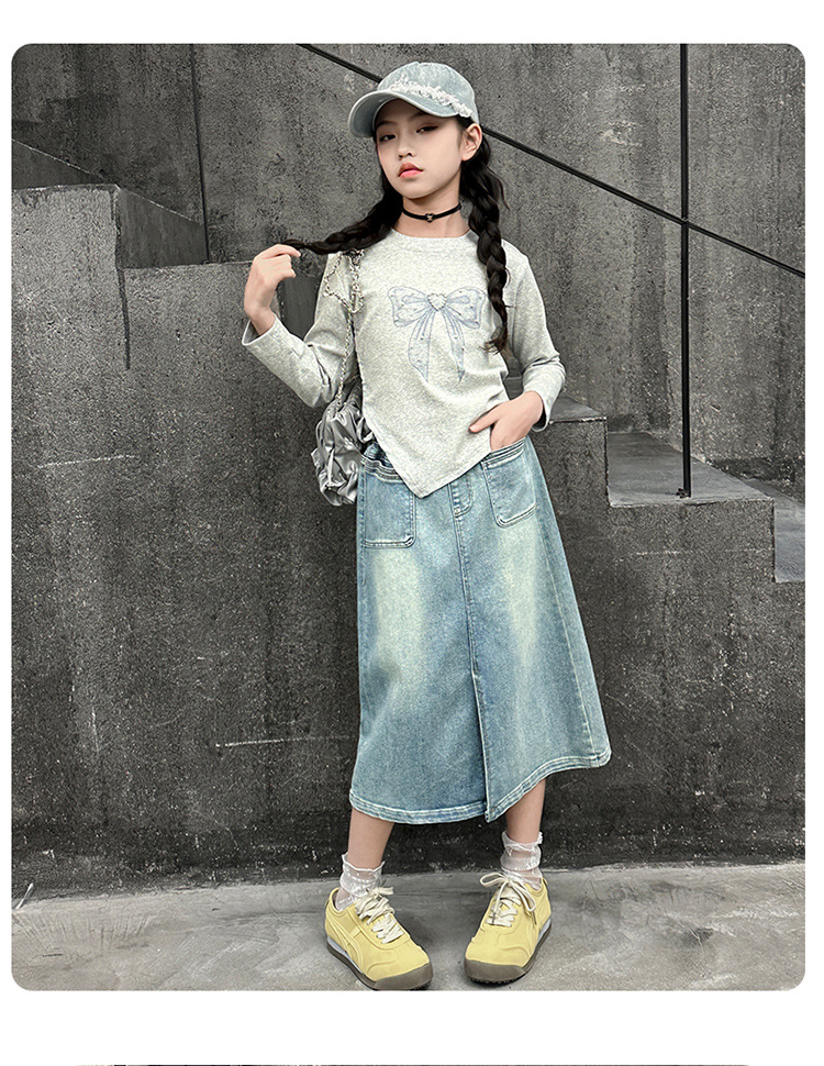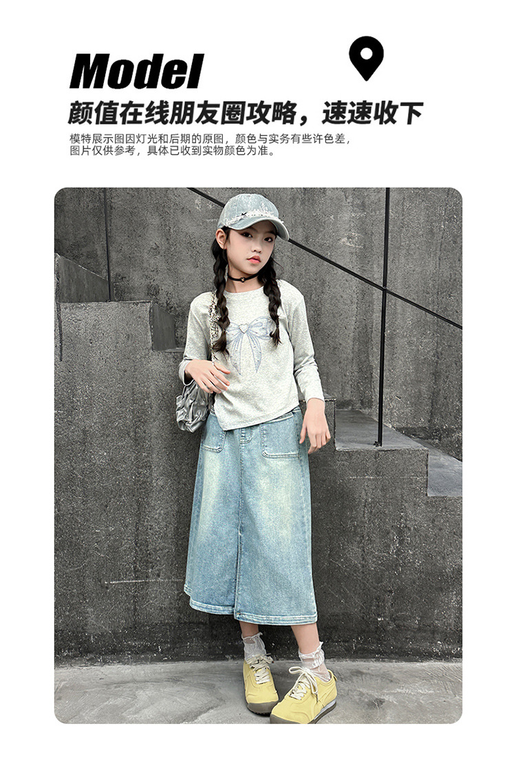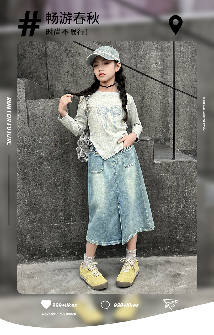 소녀 데님 치마 세트 2025 봄 소녀 활 긴팔 티셔츠 어린이 스플릿 스커트 투피스 세트스토어 가기