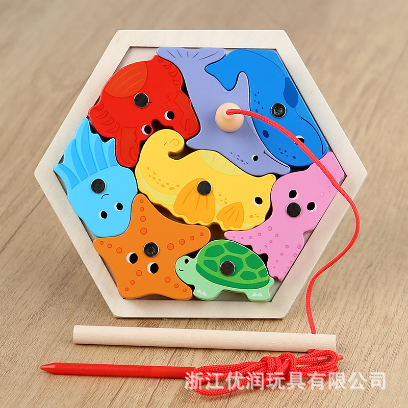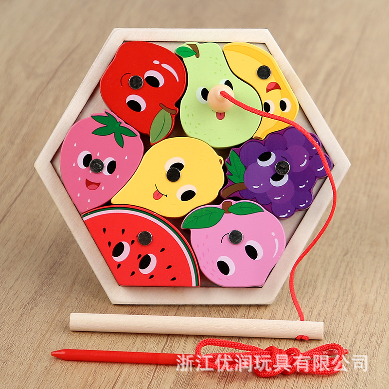 나무 자기 낚시 장난감 어린이 구슬 손 눈 조정 운동 유치원 조기 교육 소규모 퍼즐 영역스토어 가기