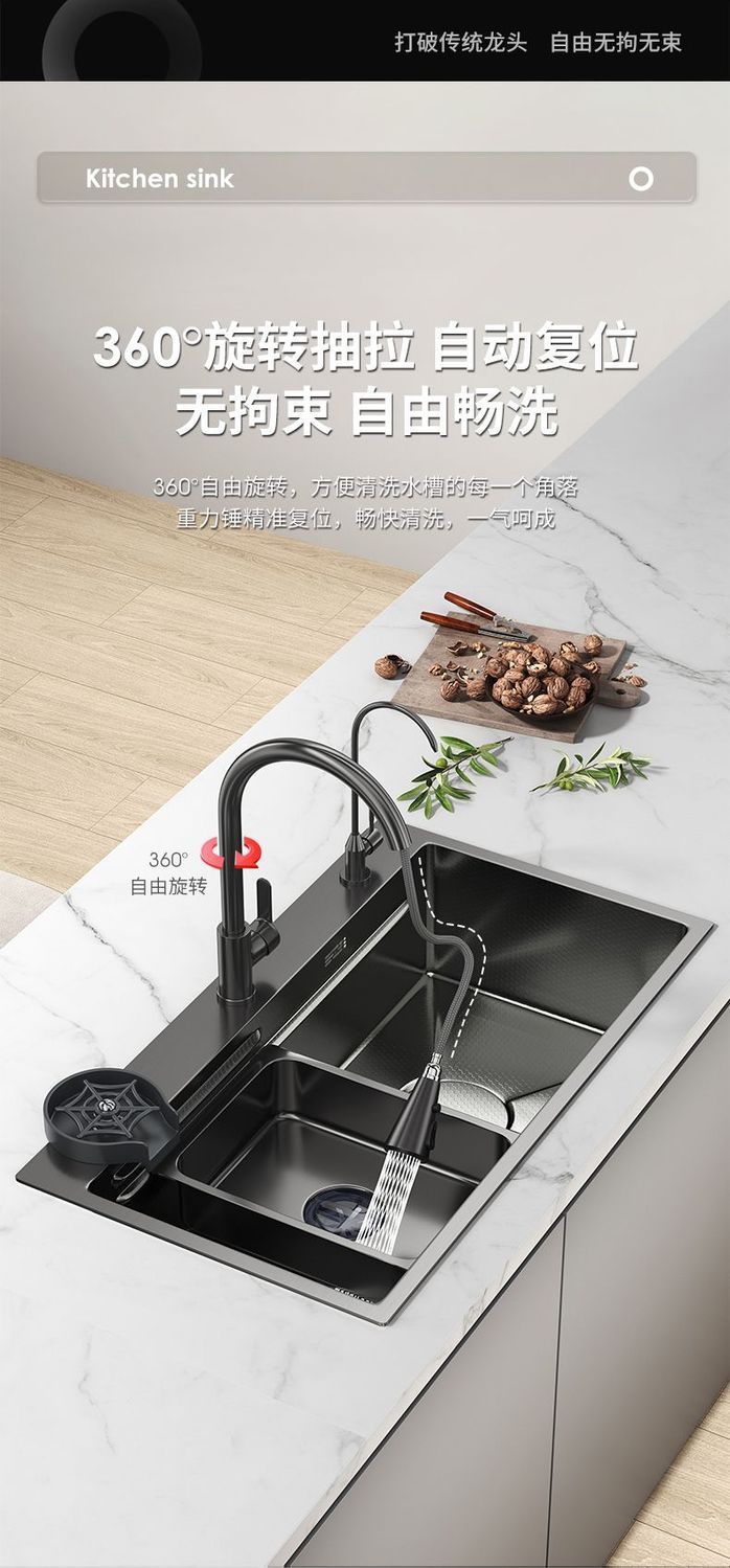 [6mm] 슈퍼 두꺼운 고래 주방 벌집 싱크 304 단일 슬롯 디지털 디스플레이 스테인레스 스틸 나노 가정용 식품 등급