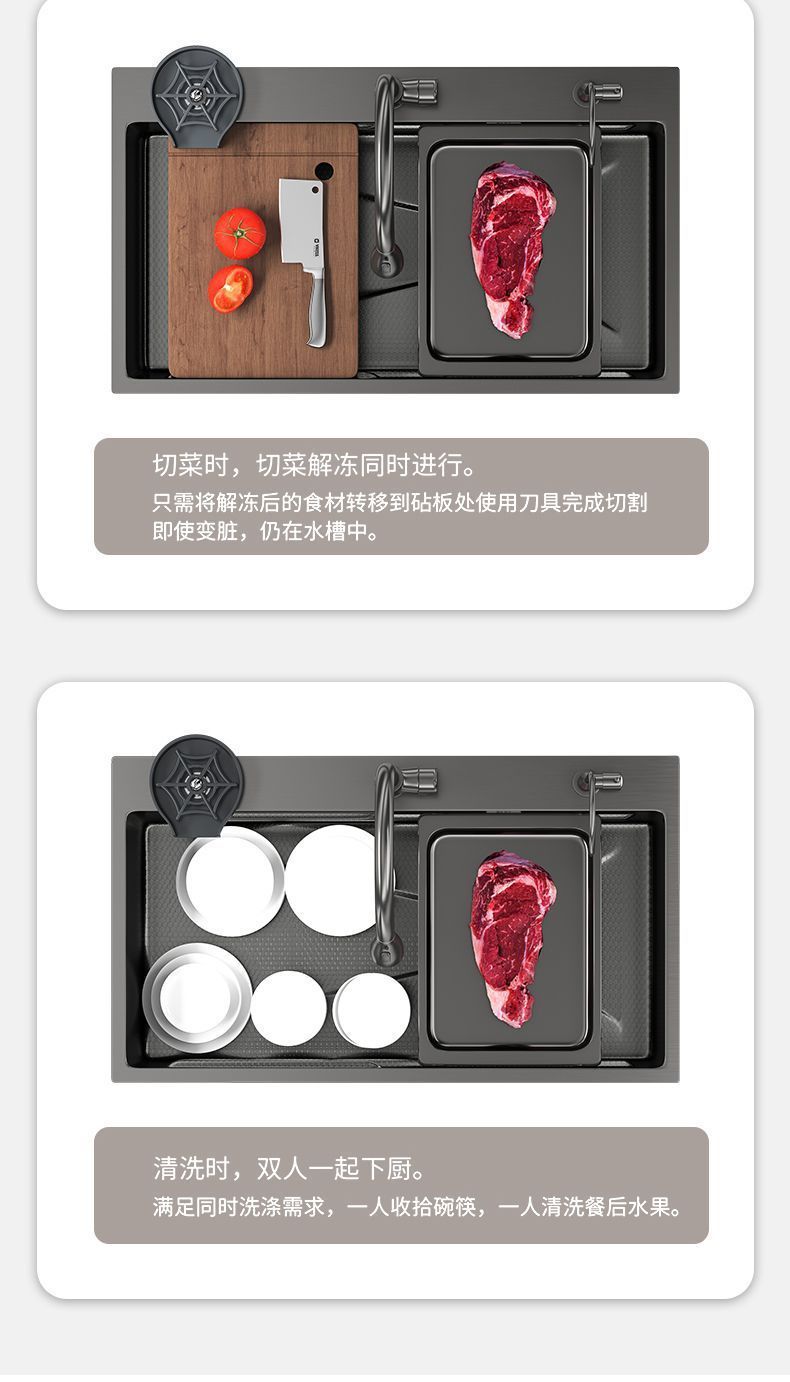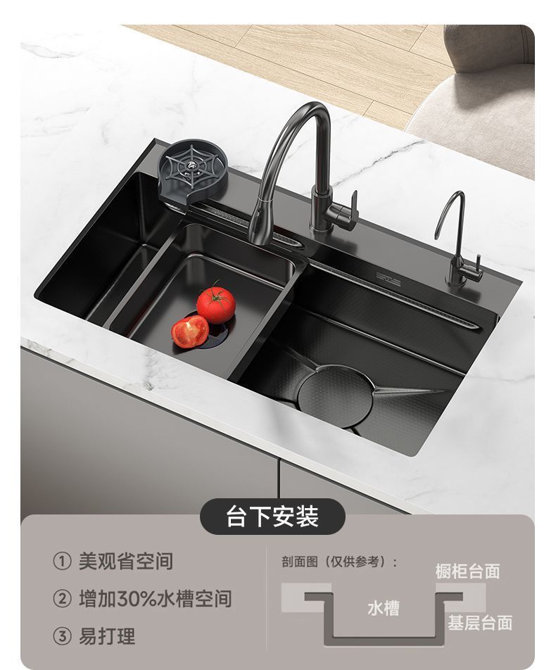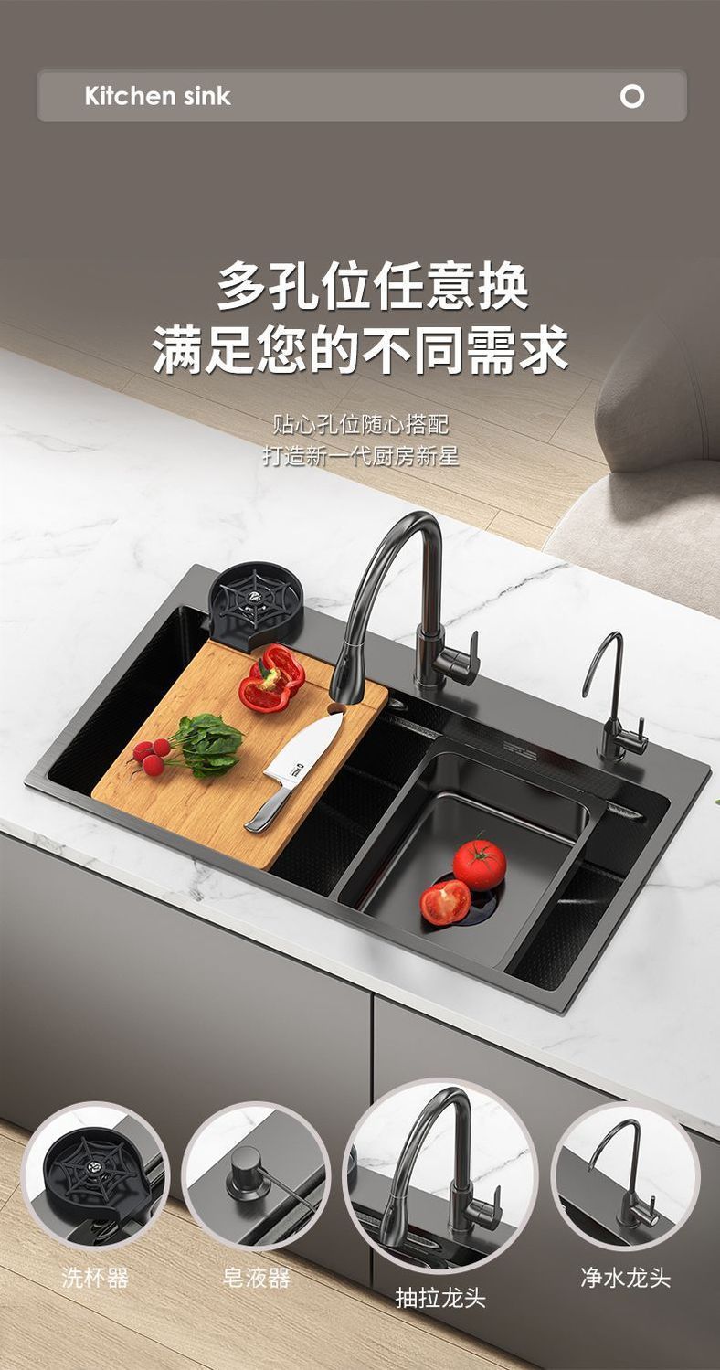 [6mm] 슈퍼 두꺼운 고래 주방 벌집 싱크 304 단일 슬롯 디지털 디스플레이 스테인레스 스틸 나노 가정용 식품 등급스토어 가기
