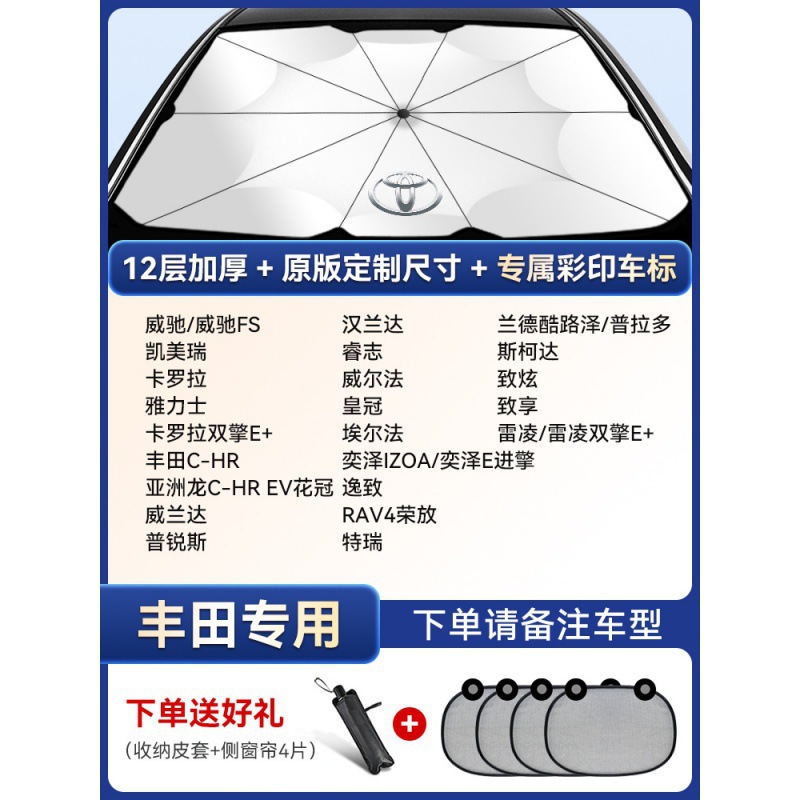 • 자외선 차단 농축-도요타★모든 자동차 로고 맞춤 제작 [사이드 배플 4개 + 가죽 케이스 포함]