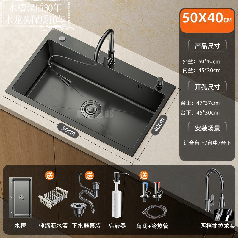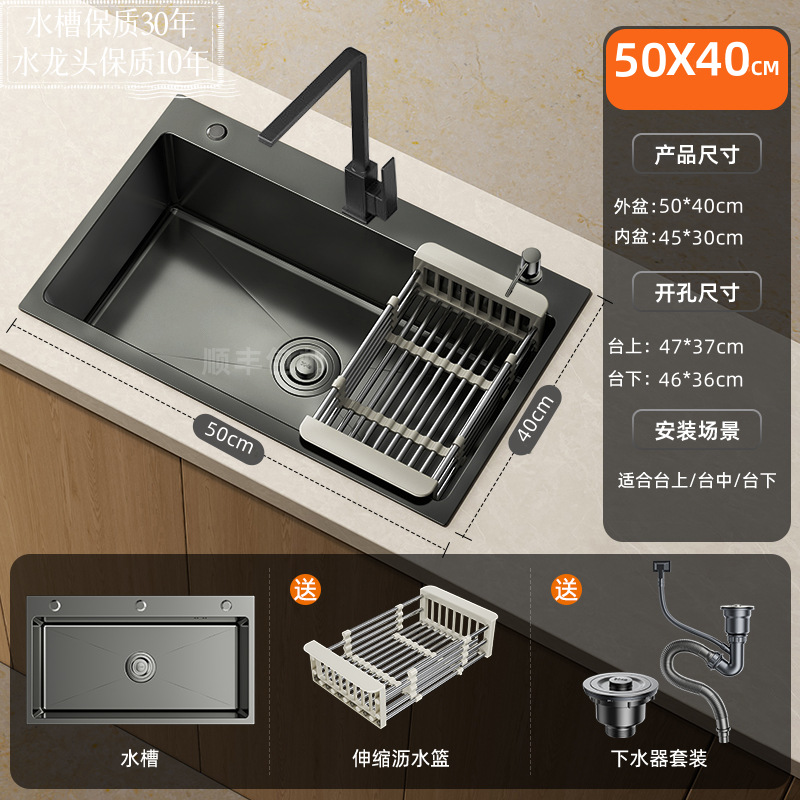 • 스테인레스 스틸 [304 인출식 구리 코어 수전 + 전체 구성] SF Express - 블랙 다이아몬드 - 항균 및 내마모성 [길이 50, 폭 40] SF 홈