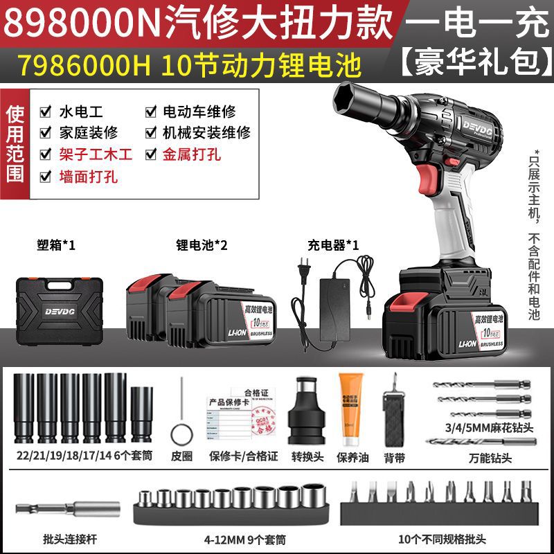• 898000N 자동 수리 고토크 브러시리스 기계-7986000H 배터리 2개 및 충전기 1개 + 고급 선물 가방