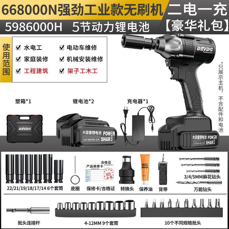 • 668000N 강력한 산업용 브러시리스 기계-5986000H 배터리 2개 및 충전기 1개 + 고급 선물 가방