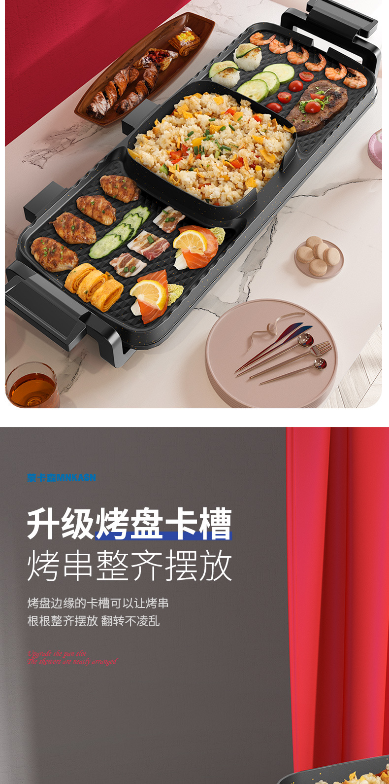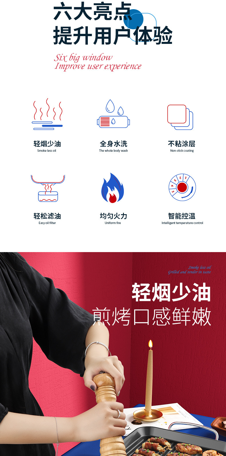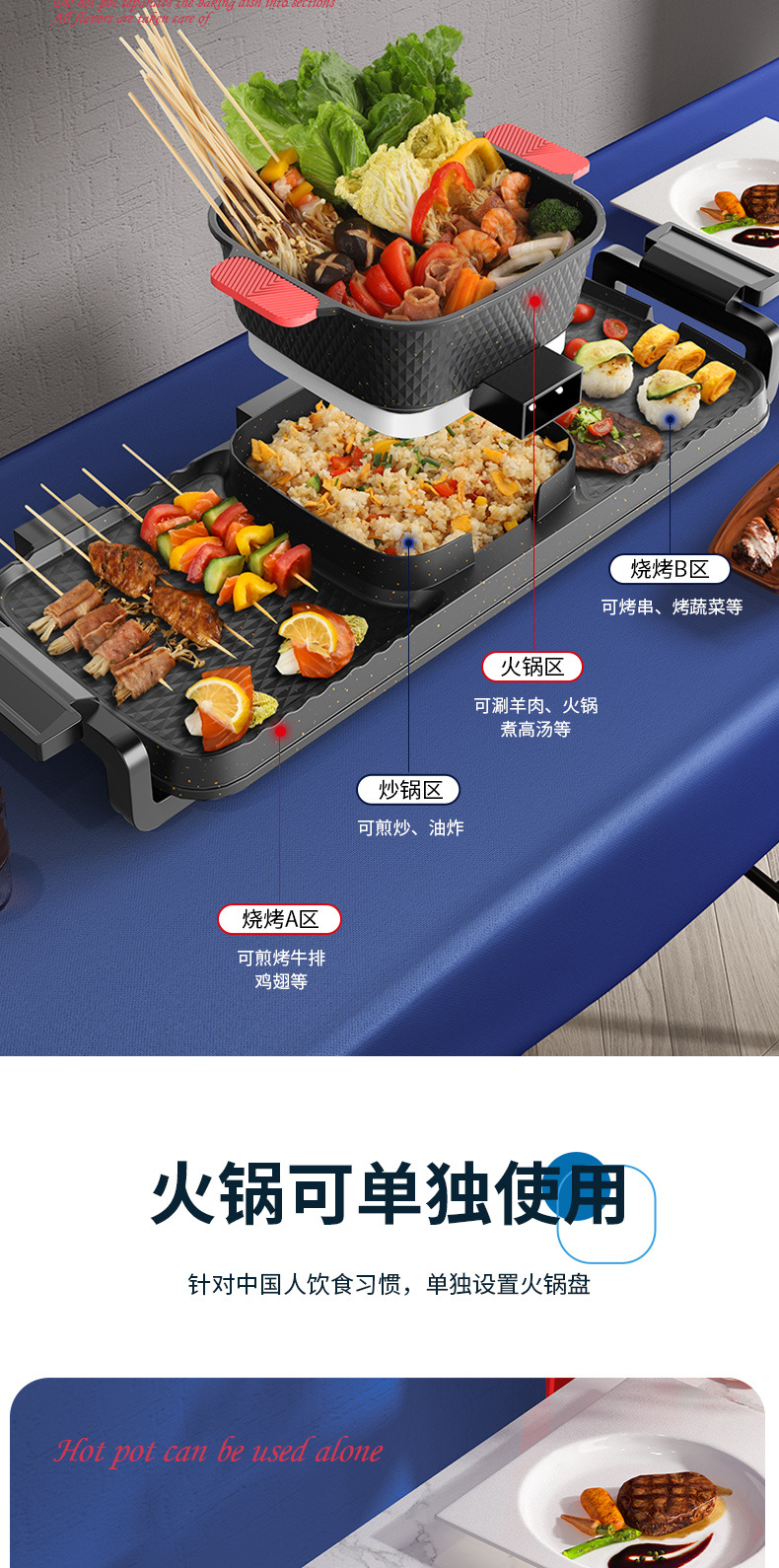 전기 바베큐 그릴 가정용 무연 바베큐 기계 린스 및 로스트 한국식 다기능 전기 그릴 팬 뜨거운 냄비 실내 생선 그릴