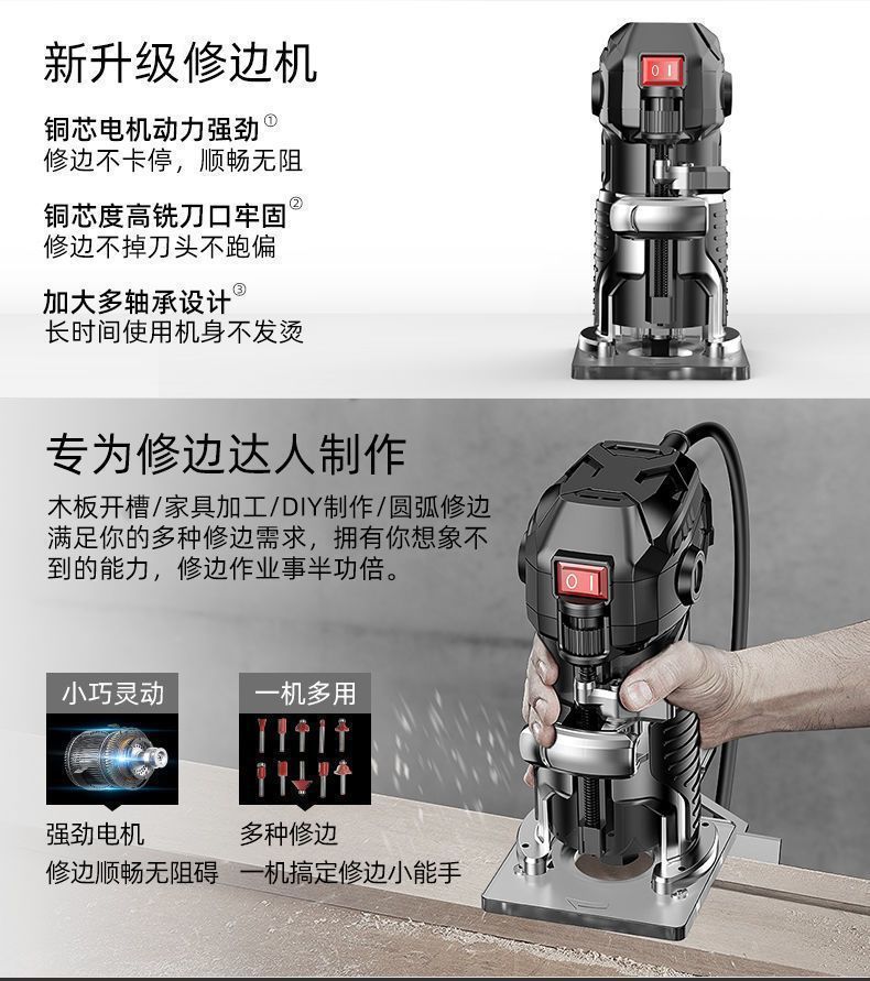 일본 수입 트리밍 기계 목공 다기능 가정용 전기 목재 밀링 기계 슬롯 기계 조각 알루미늄 플라스틱 플립 보드 공 기계스토어 가기
