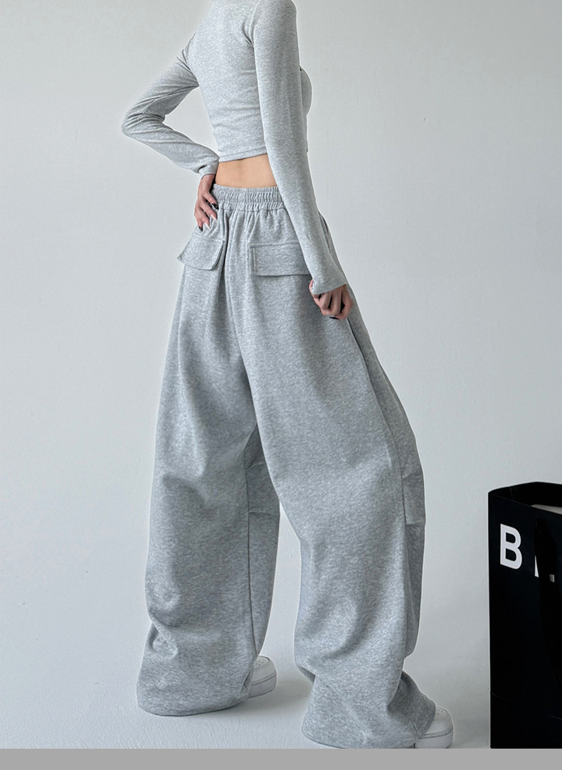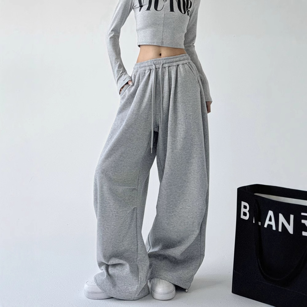 남성과 여성을위한 미국 회색 스포츠 바지 봄 가을과 겨울 새로운 높은 허리 스트레이트 루즈 캐주얼 스웨트 팬츠 작업복 넓은 다리 바지스토어 가기