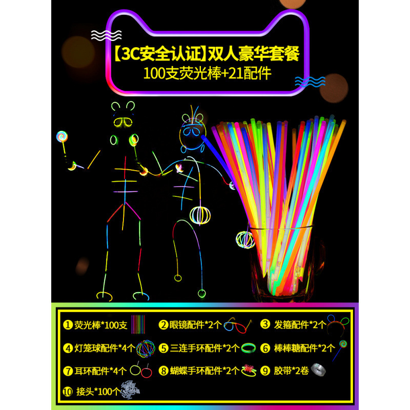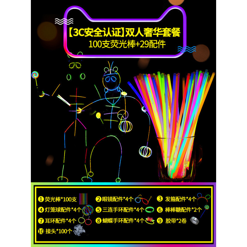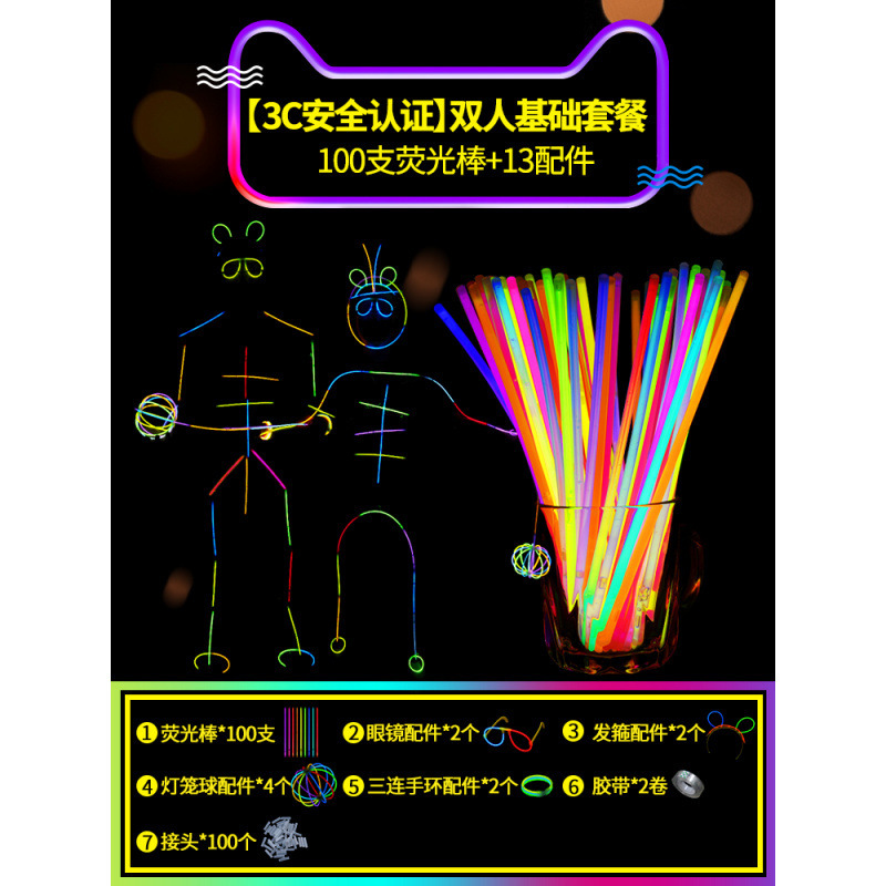 • [3C안전인증] 2인 기본 패키지 (야광봉 100개 + 부속품 13개)