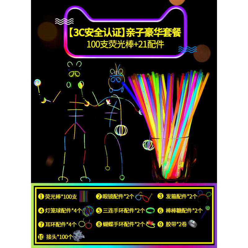 • [3C 안전인증] 부모-자식 럭셔리 패키지 (야광봉 100개 + 악세사리 21개)