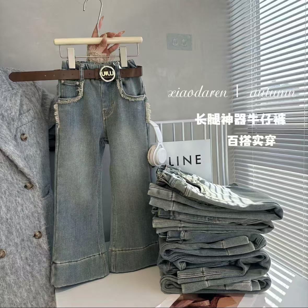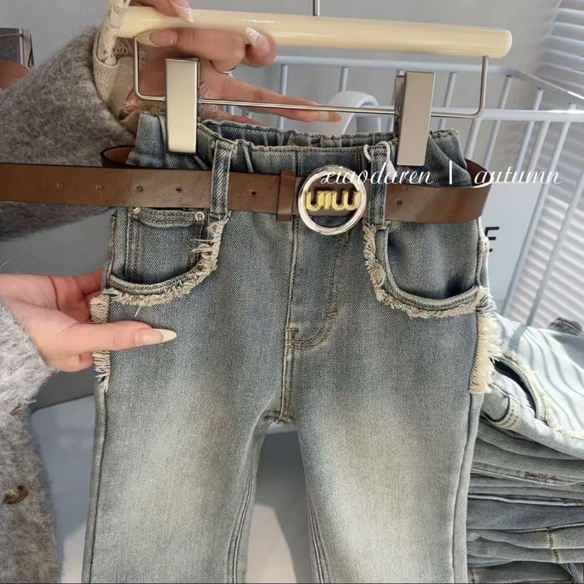 여자 새로운 기모 청바지 아기 유행 바지 어린이 캐주얼 바지 유행 봄과 가을 유행 0109A123스토어 가기