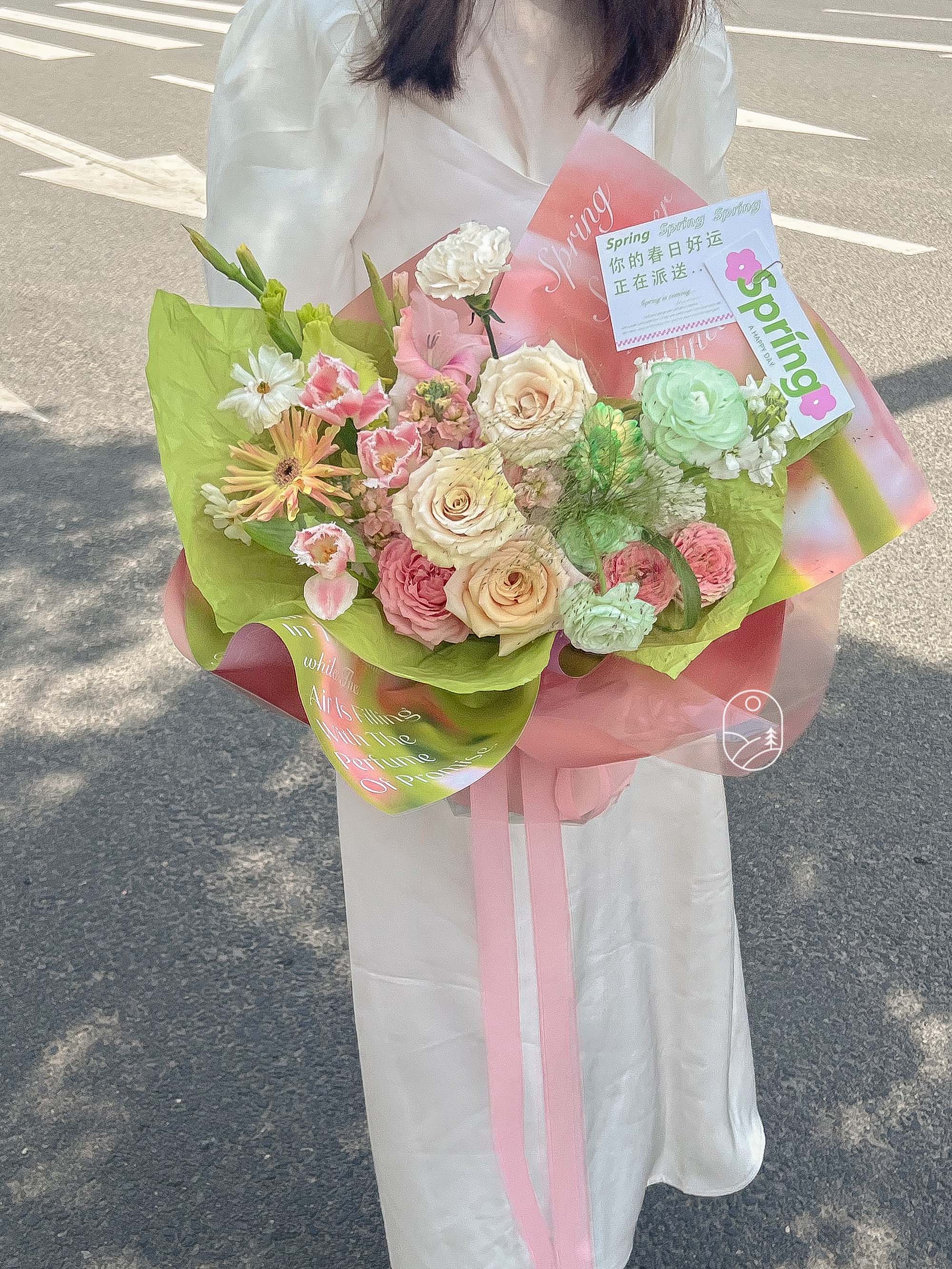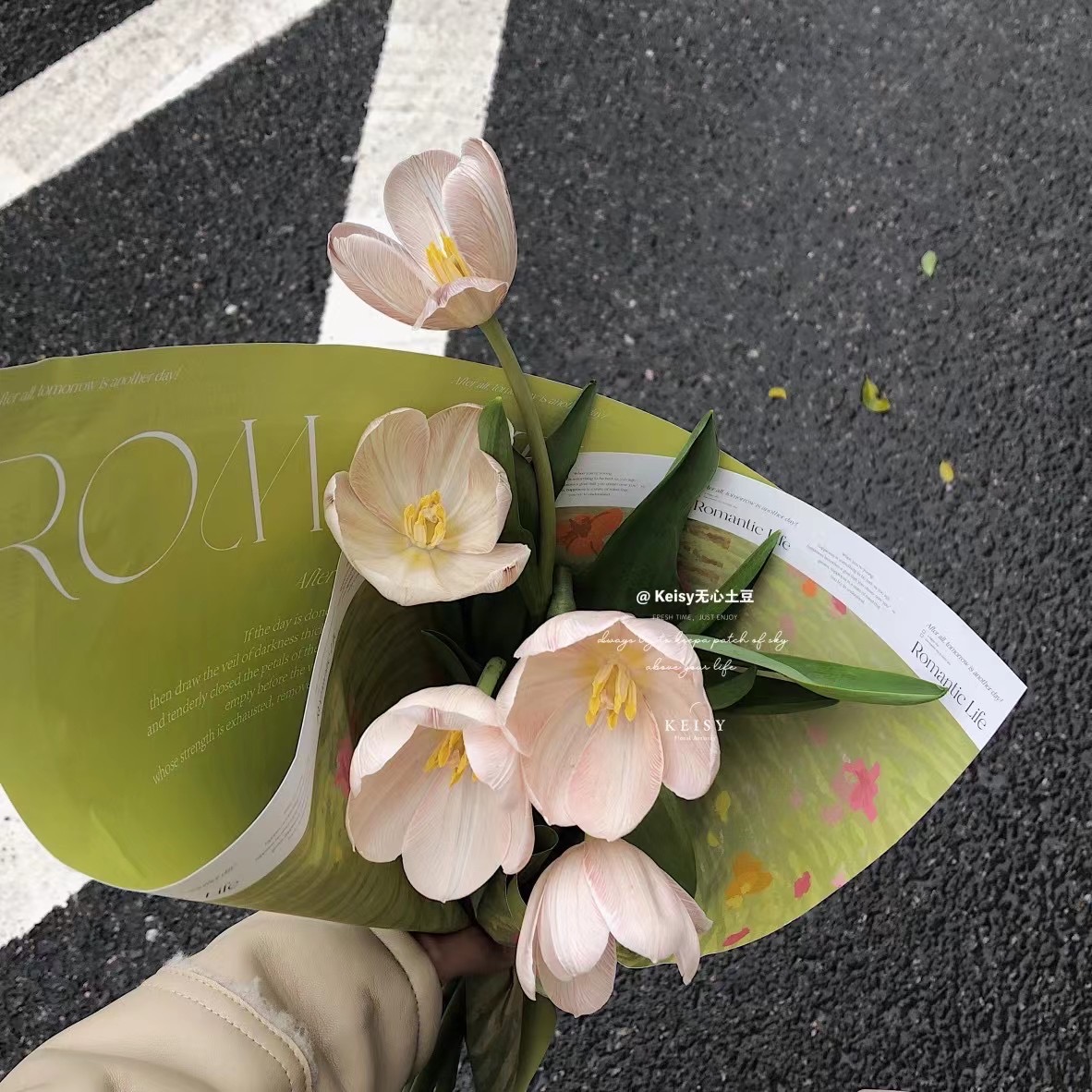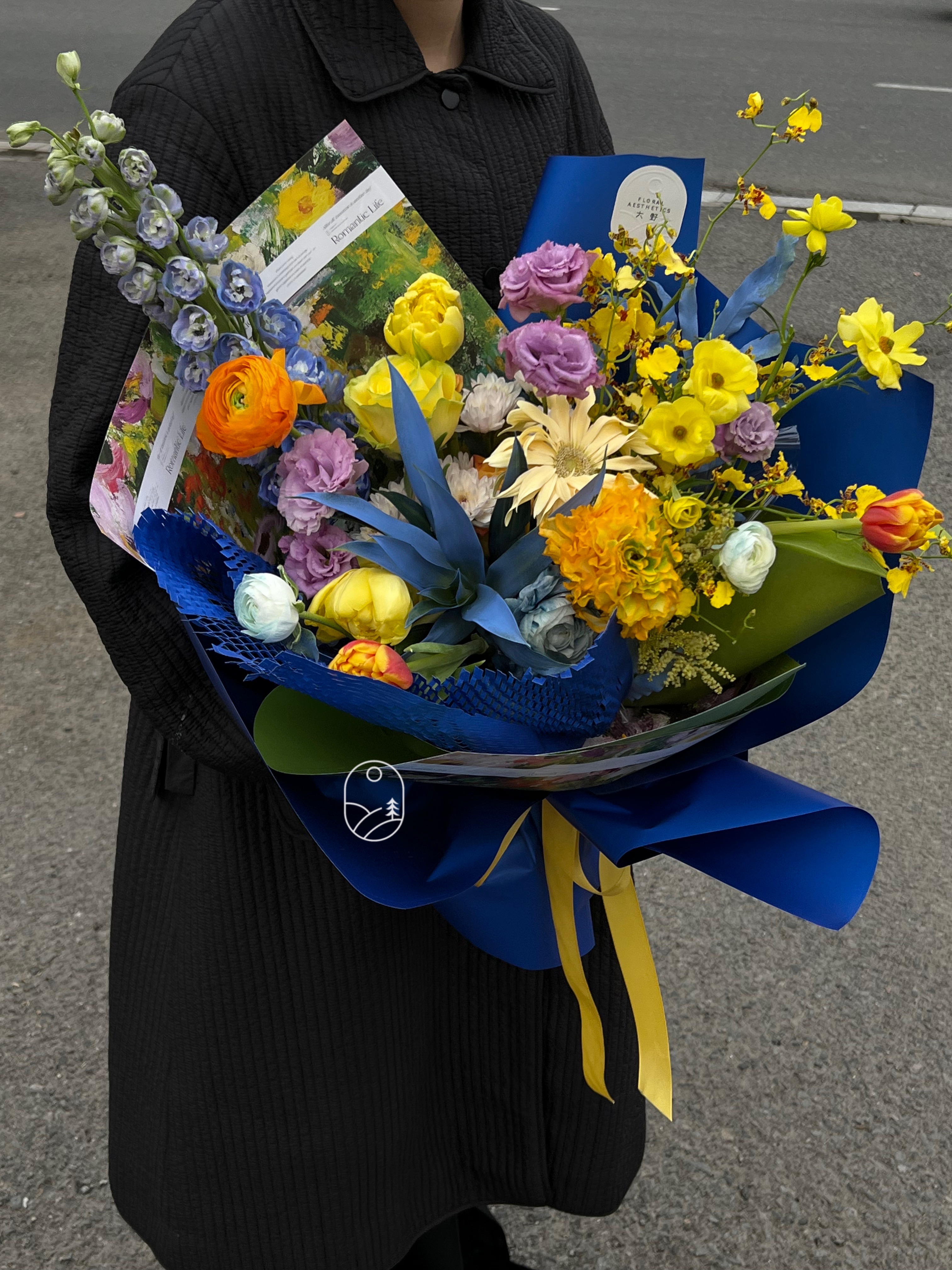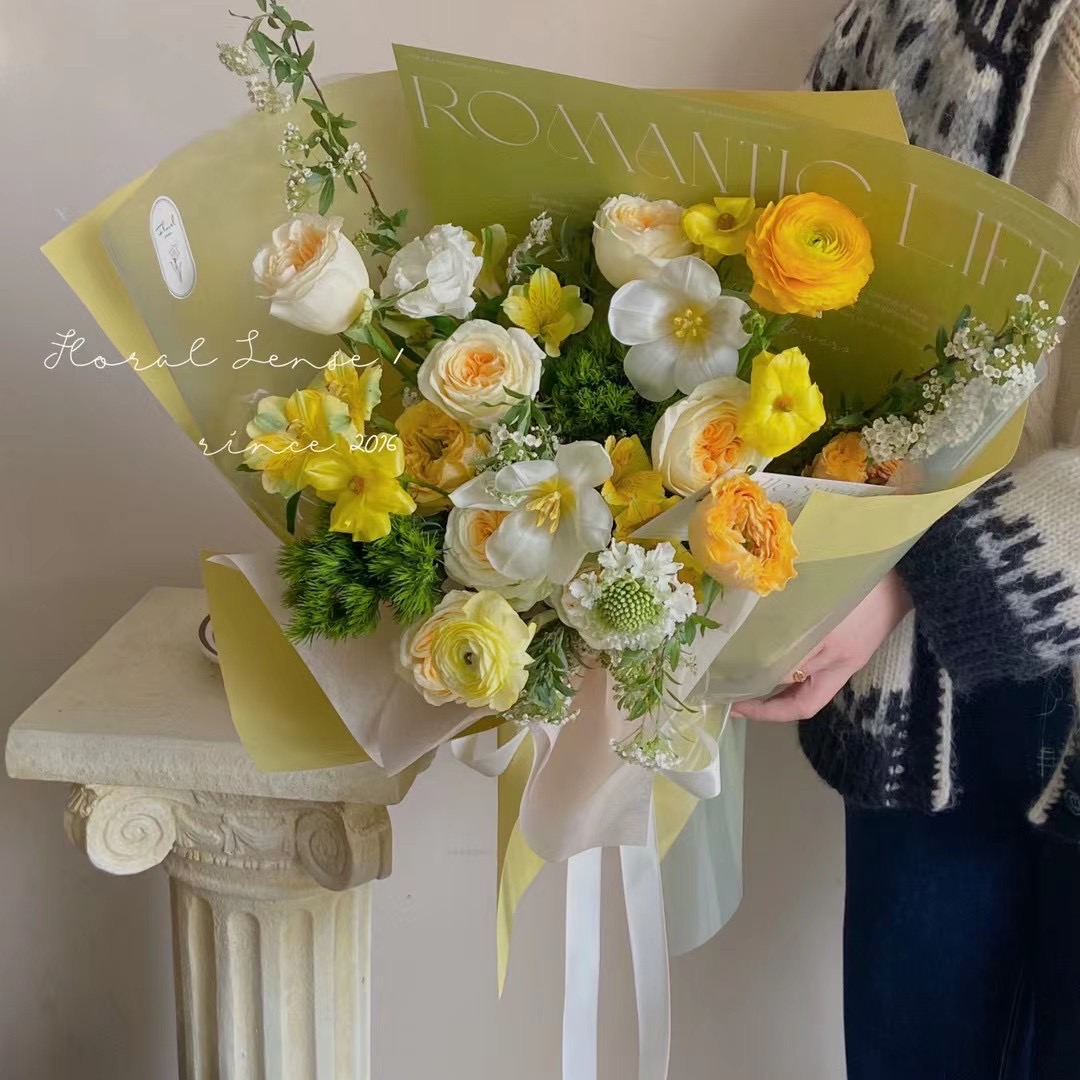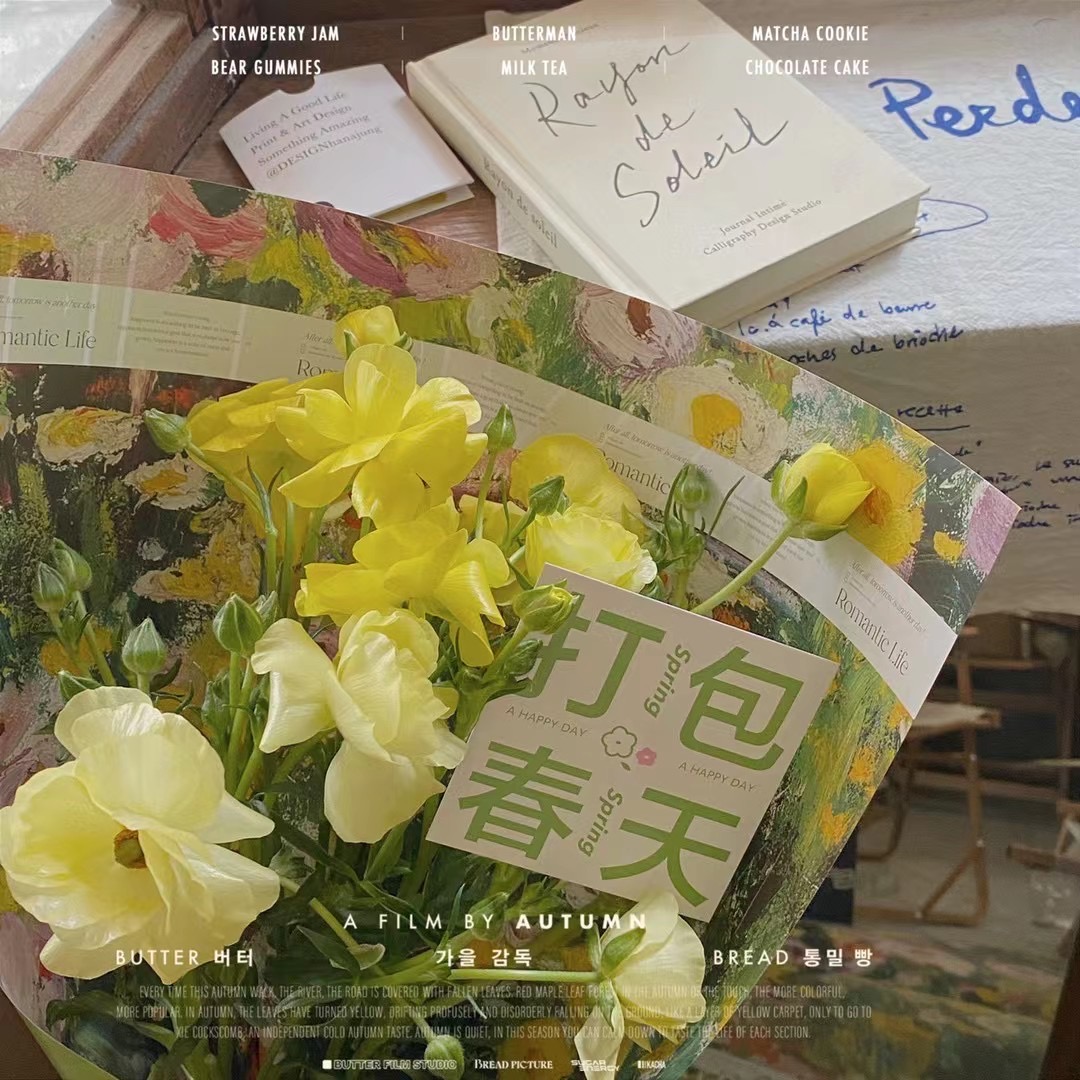 "검은 얼굴로 검은 가게" 봄 · 여름 튤립 포장지 한국 꽃예술 빅 브랜드 꽃 선물 유화