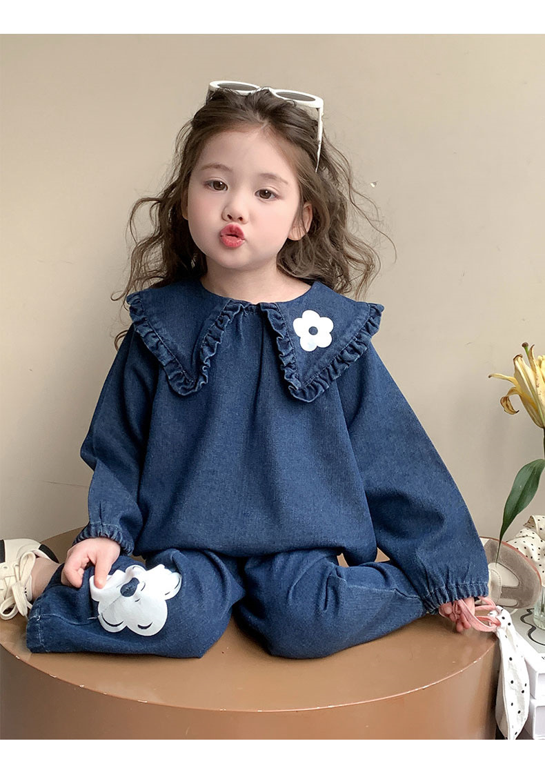 여자 인형 셔츠 2 조각 봄 가을 2025 신종 중소형 유행 어린이 7 아기 한국 9 외국식 청바지 세트스토어 가기