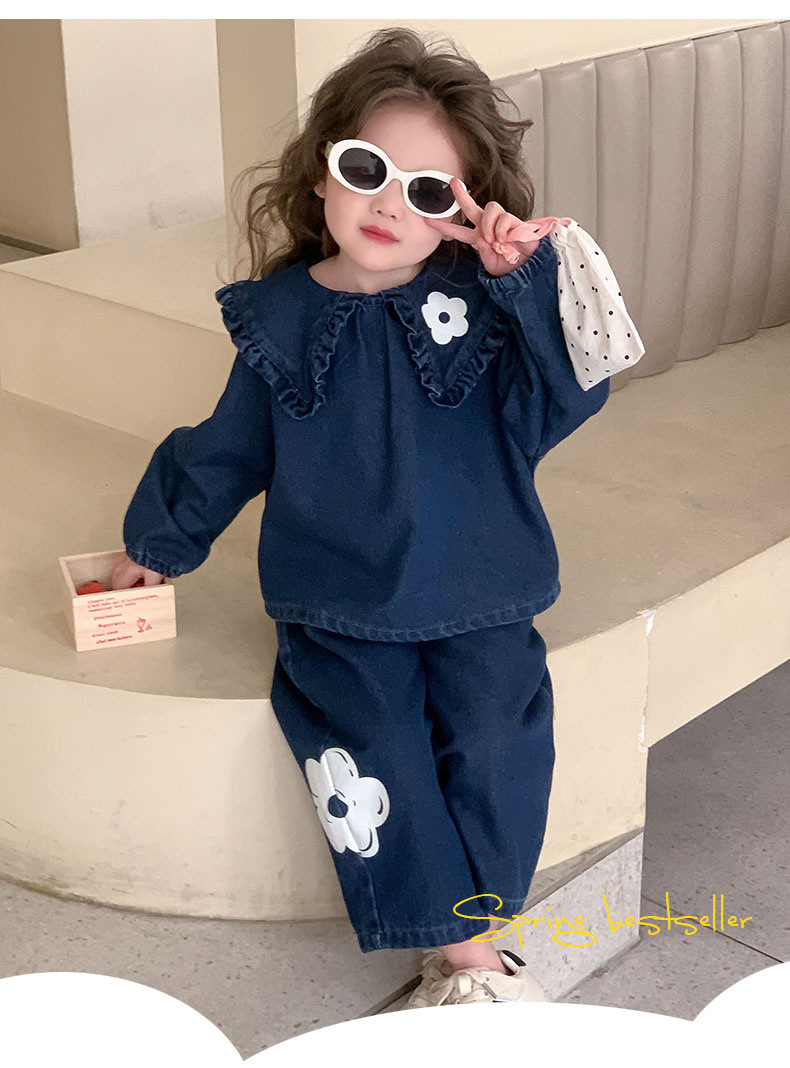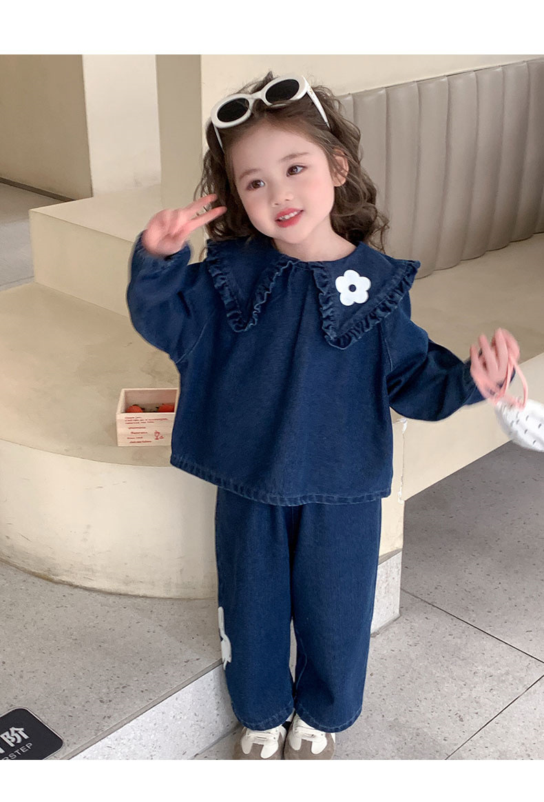여자 인형 셔츠 2 조각 봄 가을 2025 신종 중소형 유행 어린이 7 아기 한국 9 외국식 청바지 세트