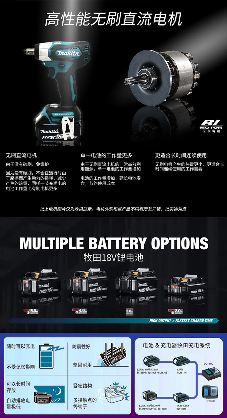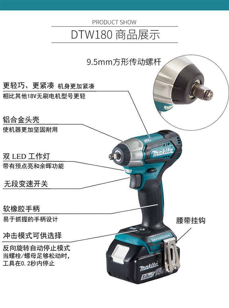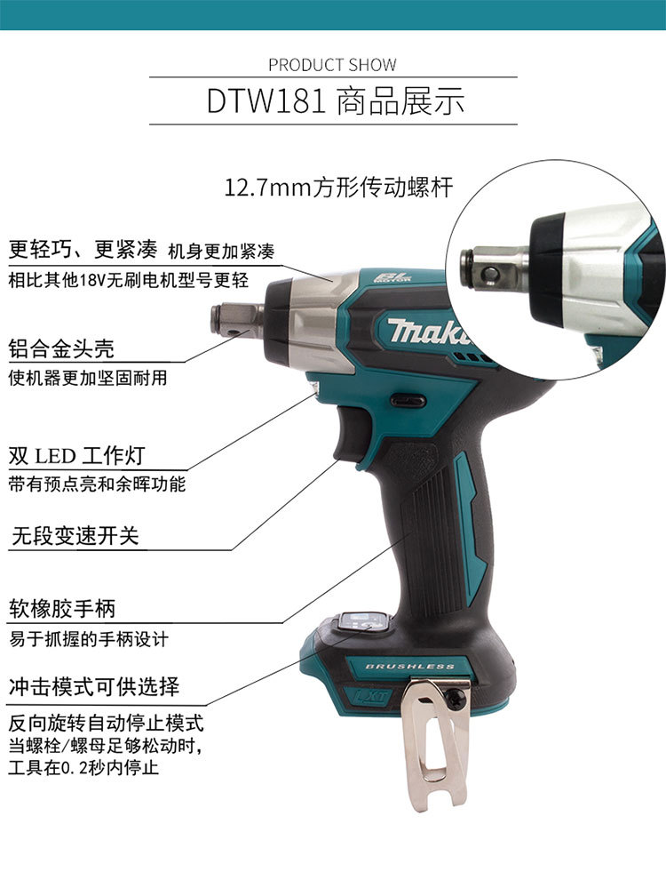 일본 makita Makita DTW180 브러시리스 충전 렌치 DTW181 리튬 배터리 전기 렌치 충격 소켓