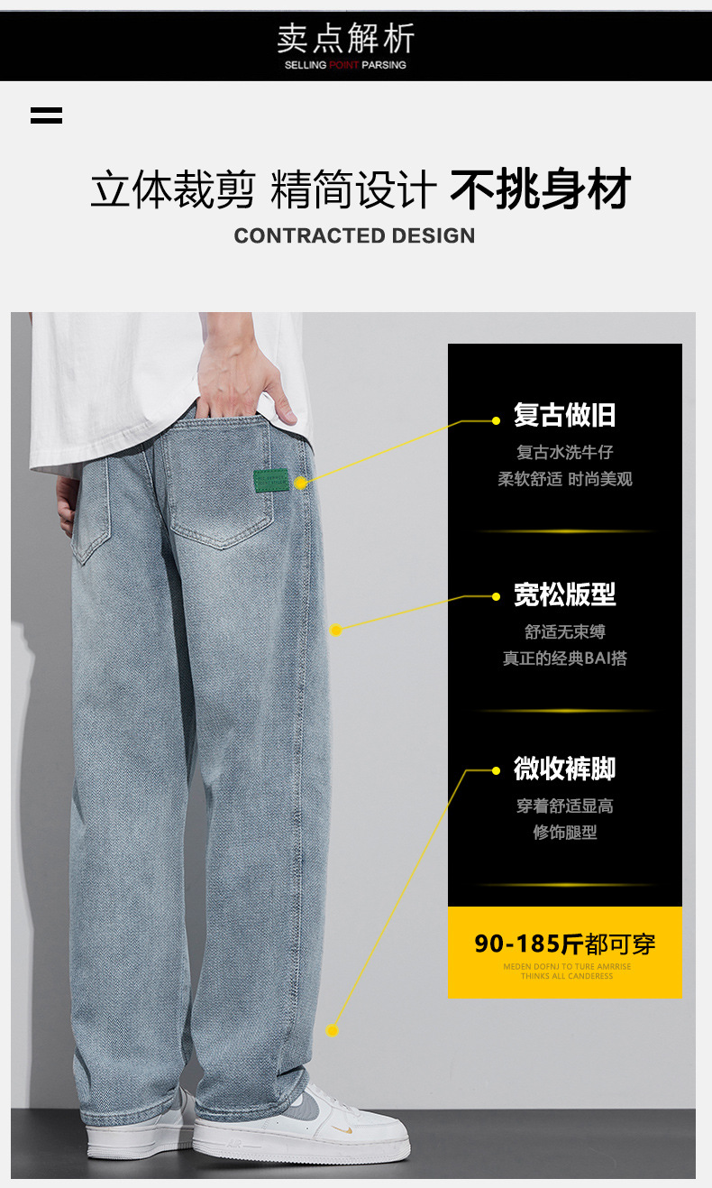 유행 스타 패턴 청바지 남자 2025 가을과 겨울 느슨한 스트레이트 미국 스타일 유행 브랜드 봄과 가을 새로운 넓은 다리 긴 바지스토어 가기