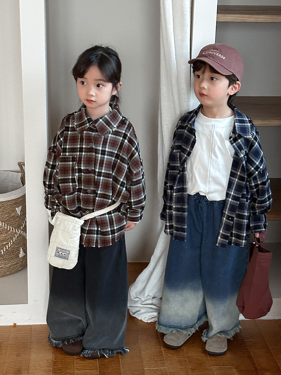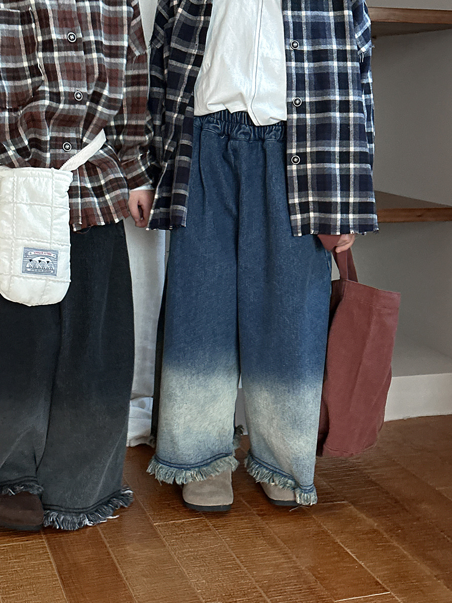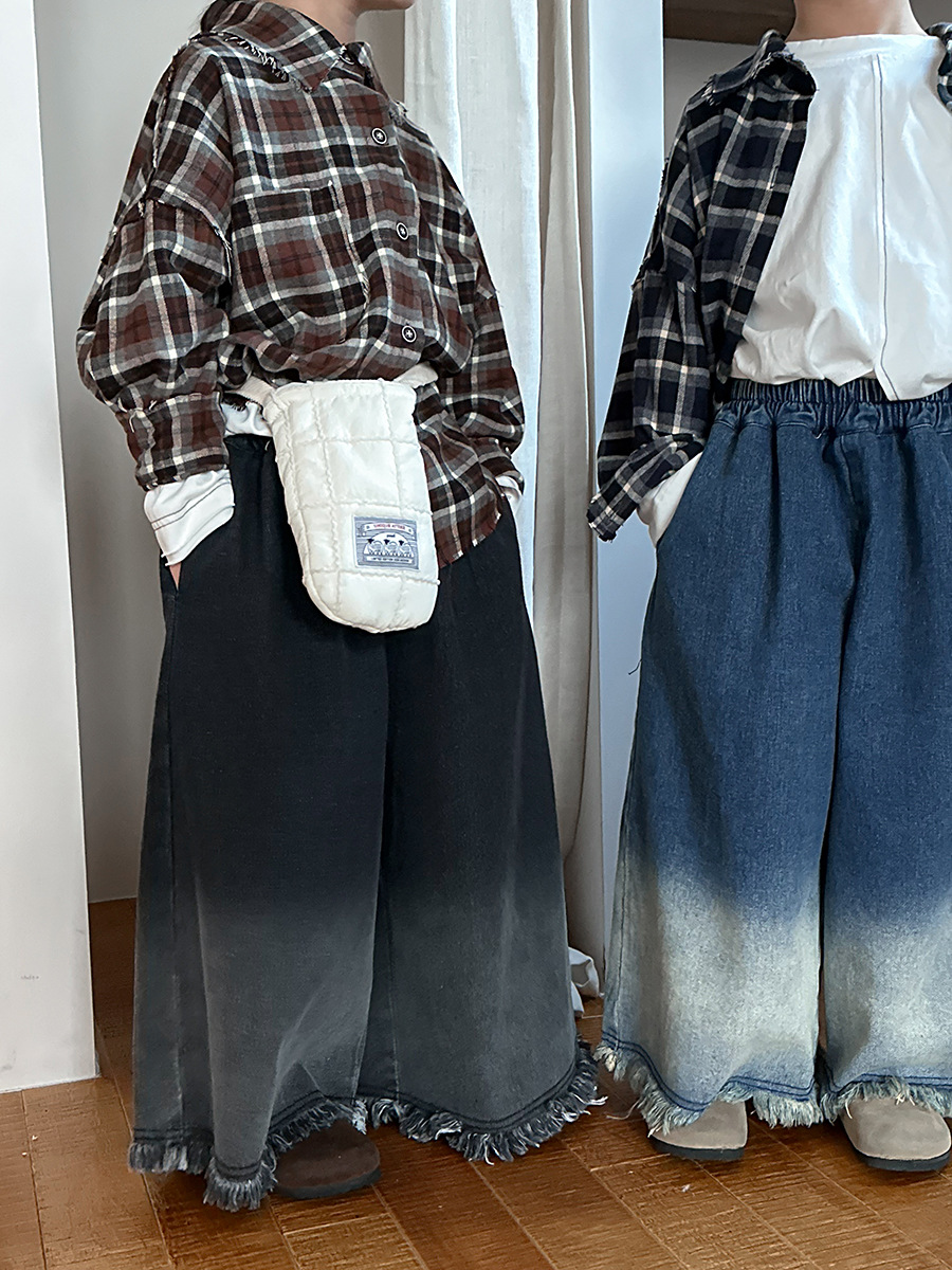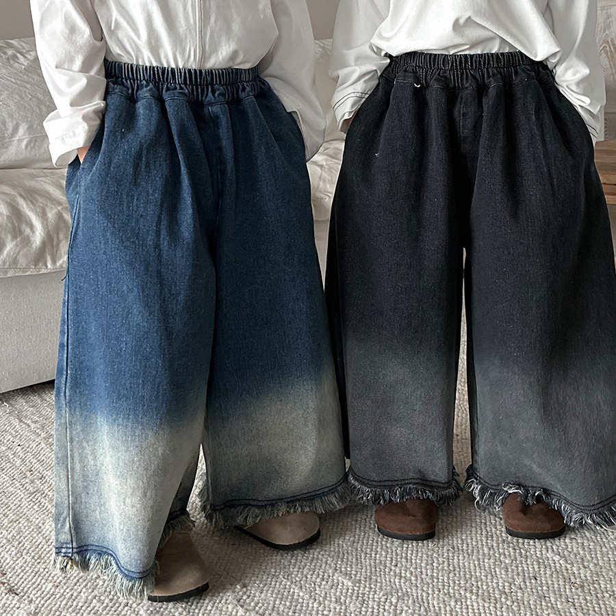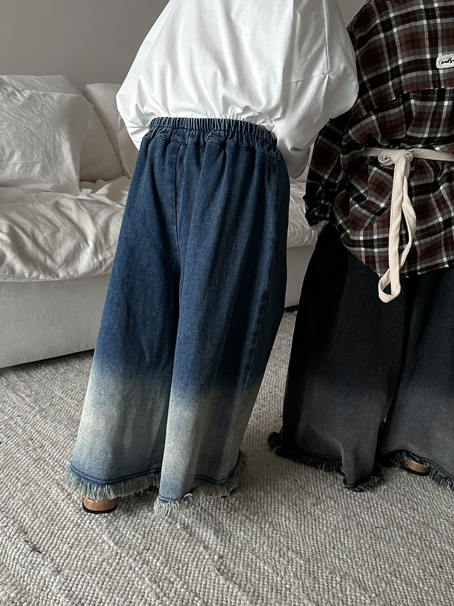 Jiaye Children's Products 2025 어린이 가을 새로운 스타일 남성과 여성을 위한 흰색 올드 청바지 베이비 로우 엣지 플레어 스트레이트 팬츠스토어 가기